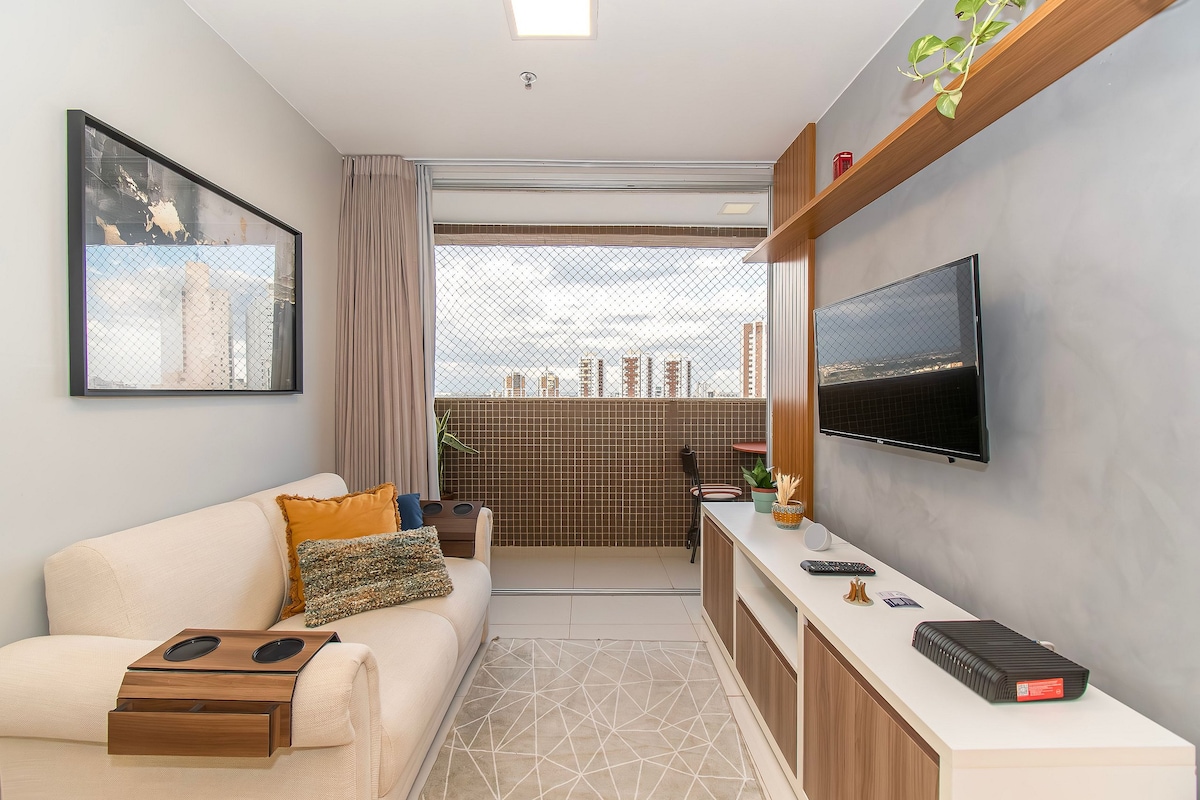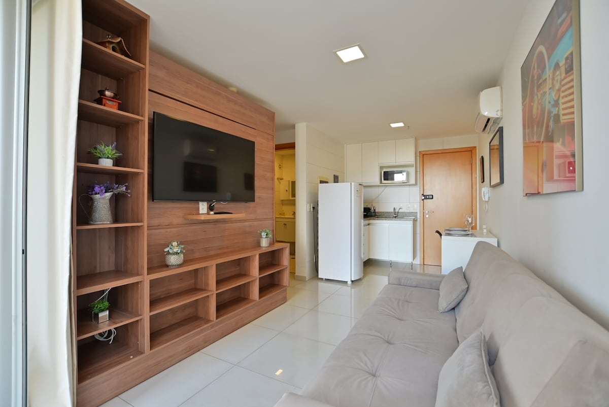 🏆Apartamento de luxo 🏬 No shopping 🔭Vista panorâmica livre no 19º andar. 🧑🧑🧒 Comporta 3 hóspedes 👑Totalmente automatizado via Alexa por comando de voz para: luzes, ar-condicionado, TV e persianas 🛌 Cama Queen 🛋️ Sofá-cama 🎦 Smart “TV 65" 🥘 Cozinha gourmet completa 🚿 Banheiro com amenidades 🏅Apartamento exclusivo premium 🏊♀️ Piscina com borda infinita 🏋️♀️ Academia ✒️ Espaço de trabalho 🛜 Wi-Fi ultrarrápido 🚙 Vaga privativa 👮 Segurança 24h 🍷Toque sofisticado