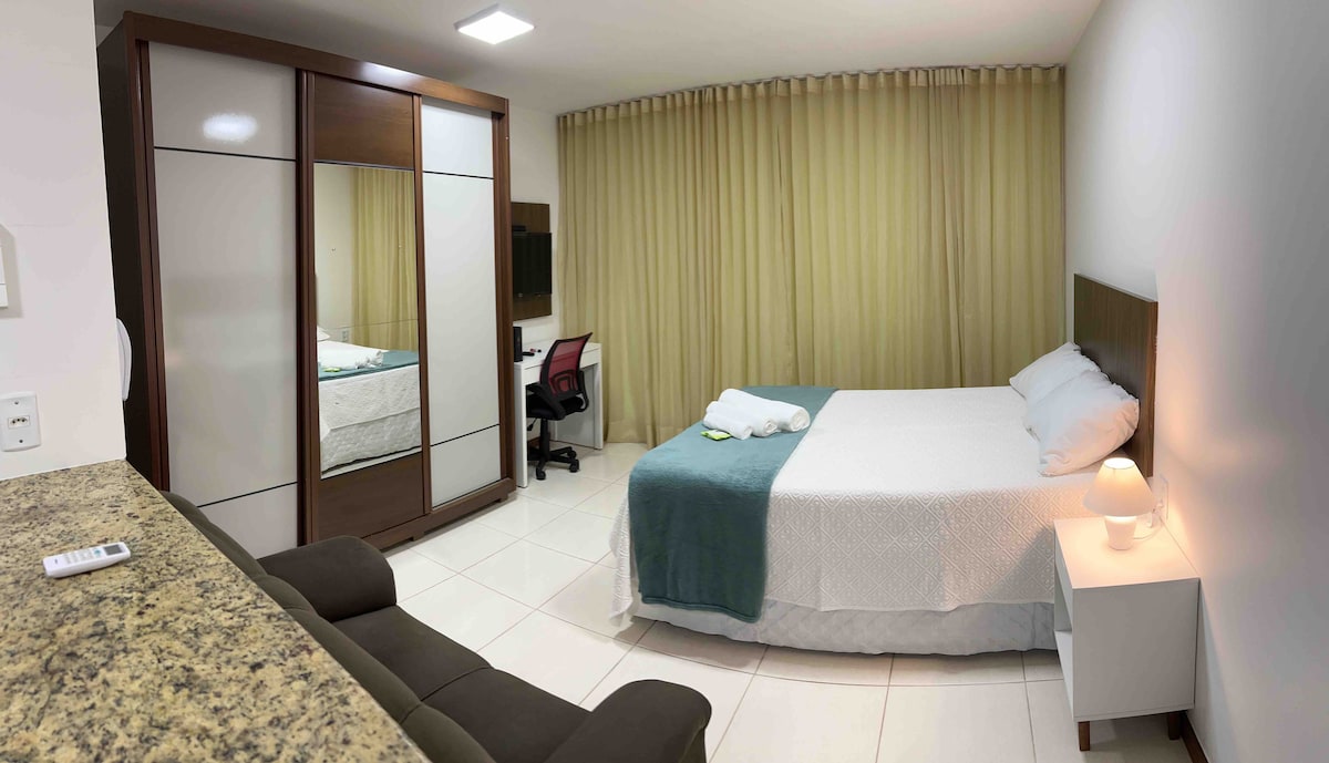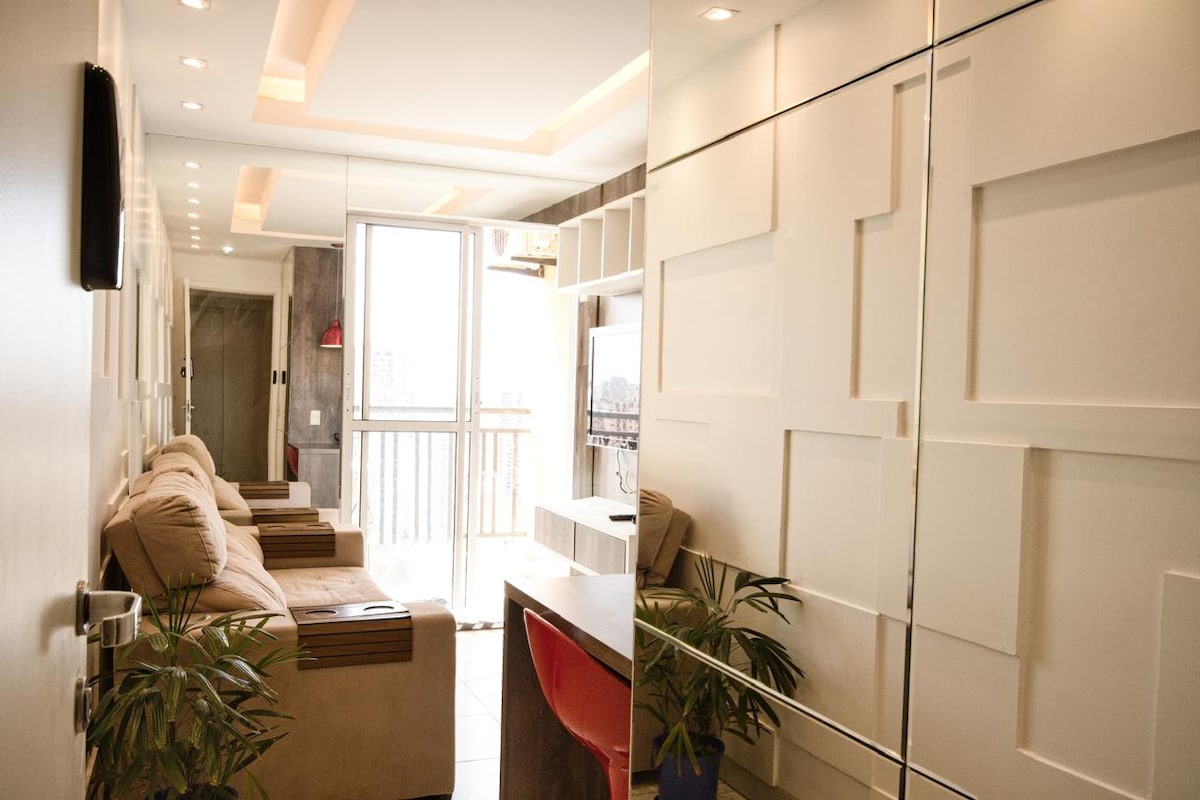 Apartamento planejado e pensando para dar conforto, praticidade e uma estadia inesquecível para o meu hóspede, fiz ele com capricho e carinho como se fosse pra mim. Sua localização é privilegiada, localizado dentro de um shopping, estacionamento, metrô, restaurante como Coco Bambu e outback , carrefour, piscina, academia e mini mercado. Todo planejado, com 2 suítes com ar condicionado, cozinha e sala open for plan, armários, mobília nova de 1a linha, camas e colchões Probel e sofá cama em linho.
