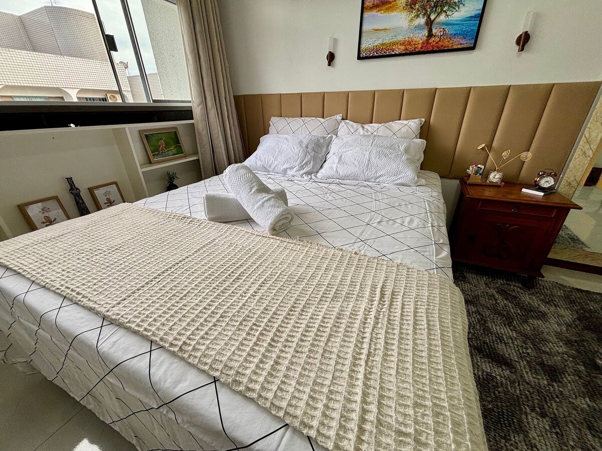 Apartamento planejado e pensando para dar conforto, praticidade e uma estadia inesquecível para o meu hóspede, fiz ele com capricho e carinho como se fosse pra mim. Sua localização é privilegiada, localizado dentro de um shopping, estacionamento, metrô, restaurante como Coco Bambu e outback , carrefour, piscina, academia e mini mercado. Todo planejado, com 2 suítes com ar condicionado, cozinha e sala open for plan, armários, mobília nova de 1a linha, camas e colchões Probel e sofá cama em linho.