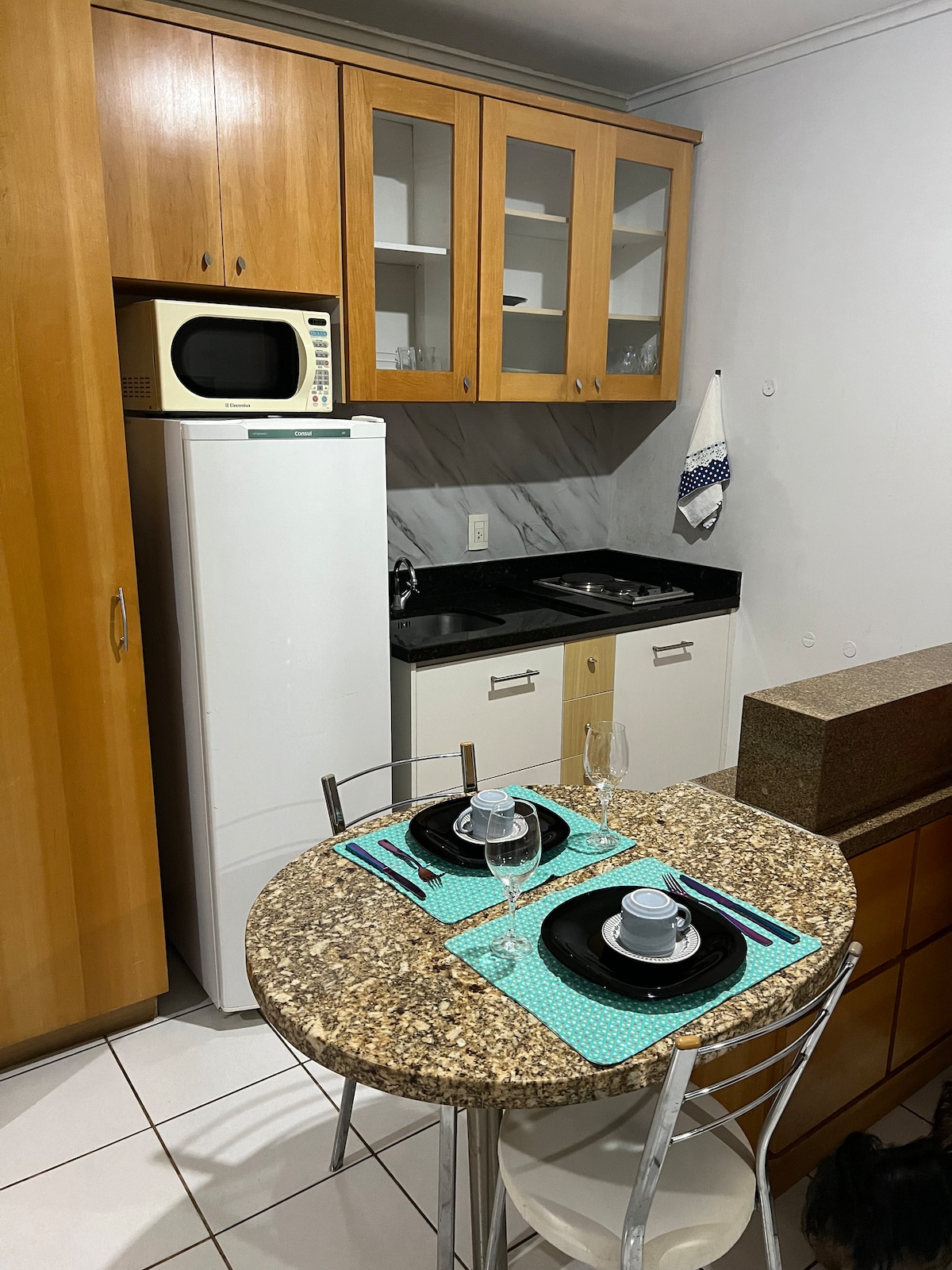 Flat com otimo custo beneficio: Ar condicionado, Frigobar , TV a cabo, Mesa de trabalho, Roupa de cama de ótima qualidade, Banheiro com agua quente, Criado mudo, Poltrona, Telefone fixo, Wi-Fi, Elevadores, Garagem coberta rotativa, Serviço de quarto diária, Piscina, Sauna, Academia, Lavandeira e Restaurante 24h. Ps. Restaurante, Café da Manhã e Lavadeira (Não Inclusos na diaria), Não é permitido fumar no quarto, Não é permitido animais de extimação. Excelente localização proximo a tudo.