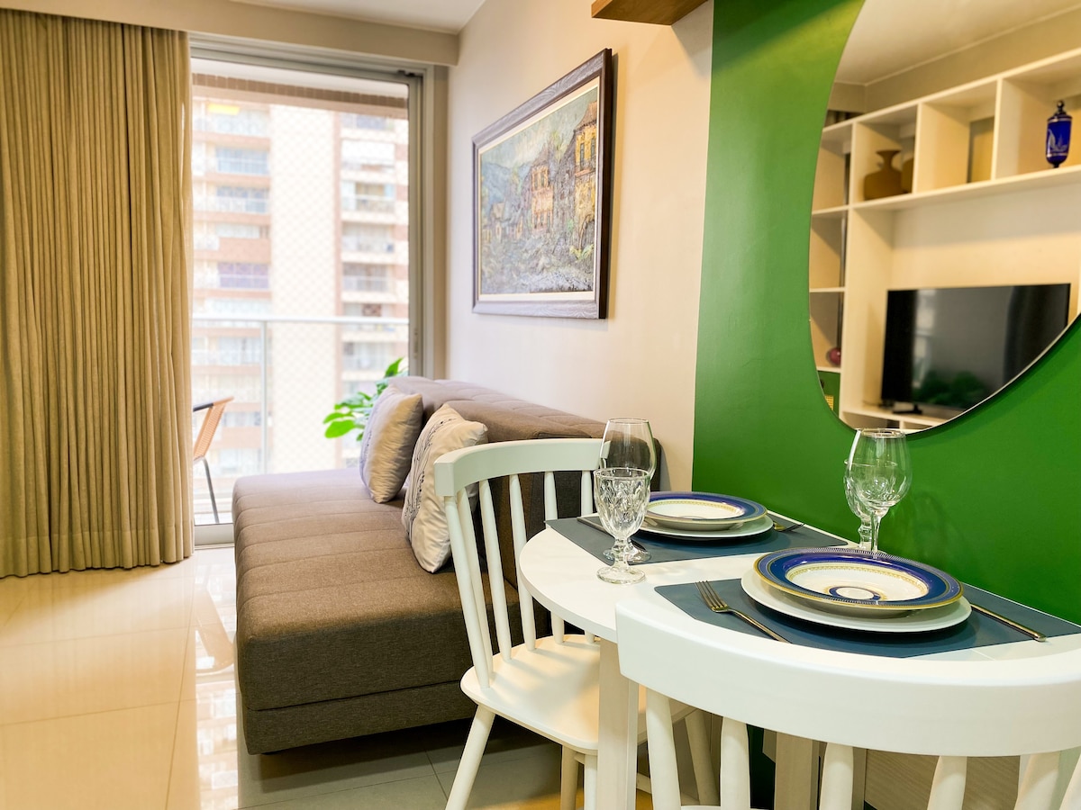 Desfrute da melhor localização de Águas Claras, a padaria fica 4 min e o metrô a 6 min, tudo a pé. Apto com garagem coberta, lavanderia completa na unidade, varanda com tela de proteção, cozinha equipada, roupa de cama e banho disponíveis. Wi-Fi rápido, Smart TV 55 ‘. Suíte com ar condicionado e colchonete extra, sala com sofá fixo de 2 m. Tudo isso na frente de um Parque Ecológico! Um ap fofo e super completo só pra vc!