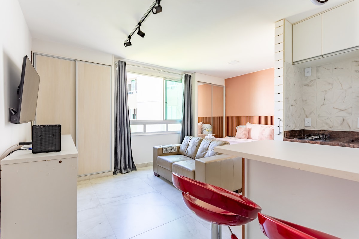 Hospede-se em um elegante apartamento de 35 m² no coração do DF Century Plaza, Águas Claras. Com capacidade para até 3 pessoas, o espaço oferece Smart TV, cozinha equipada e roupas de cama de alta qualidade. O design moderno e acolhedor proporciona conforto e praticidade, perfeito para trabalho ou lazer. Localização privilegiada, com acesso rápido ao metrô e comodidades no complexo. Experimente uma estadia memorável com o charme e a qualidade que só Harmonia Stays oferece!