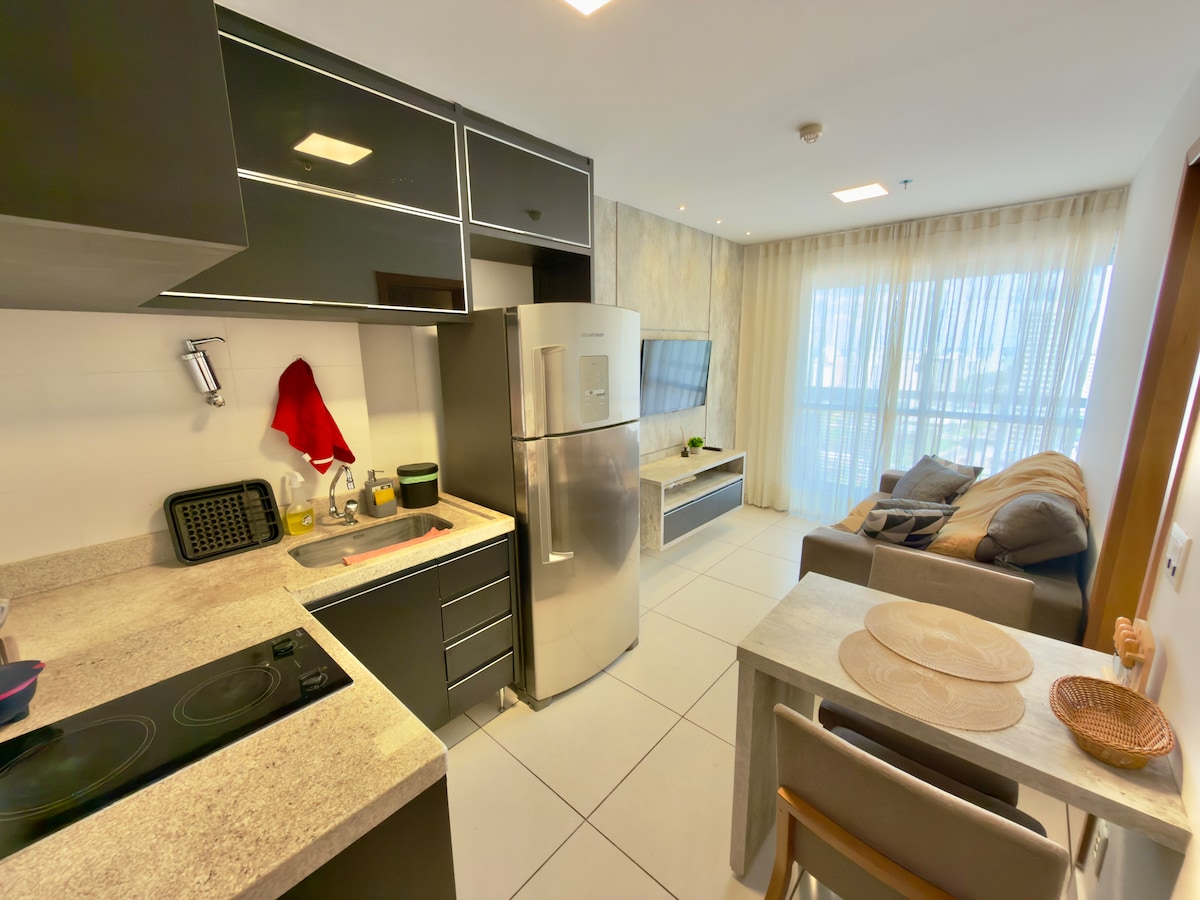 Apartamento planejado e pensando para dar conforto, praticidade e uma estadia inesquecível para o meu hóspede, fiz ele com capricho e carinho como se fosse pra mim. Sua localização é privilegiada, localizado dentro de um shopping, estacionamento, metrô, restaurante como Coco Bambu e outback , carrefour, piscina, academia e mini mercado. Todo planejado, com 2 suítes com ar condicionado, cozinha e sala open for plan, armários, mobília nova de 1a linha, camas e colchões Probel e sofá cama em linho.