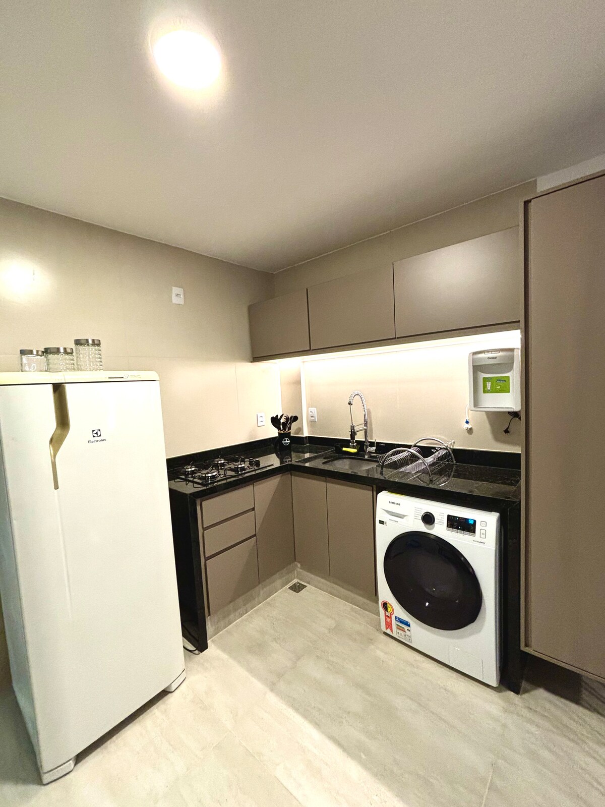 Bem-vindo(a) à nossa aconchegante kit no Sudoeste, DF! Desfrute de uma estadia confortável nesta moderna acomodação. Com cama de casal confortável, você terá noites relaxantes. Prepare refeições na cozinha equipada com frigobar e fogão. Aproveite seu tempo livre assistindo à TV ou conectando-se ao Wi-Fi. Além disso, você terá uma vaga exclusiva de garagem. Localizado em uma área privilegiada, próximo a restaurantes, lojas, à Maternidade Brasília e ao Parque do Sudoeste. Reserve já!