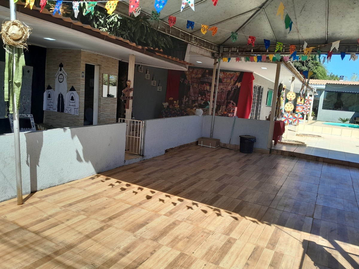 ATTENTION: FAMILY ENVIRONMENT, NO PARTIES, EVENTS, SOUND, OR LOUD NOISES Pets: Welcome Swimming pool, solar heating (28º to 31º), Bedroom 114 of Recanto das Emas - Brasília-DF For relaxation, accommodation for up to 4 people (in the same room) + 4 guests Check-in from 8:00 AM (negotiable) Check-out until 6:00 PM (negotiable) Swimming pool Wi-Fi Full kitchen Towels and bed linens Barbecue grill and barbecue items Cleaning supplies 1 bedroom with air conditioning YouTube Premium and Netflix