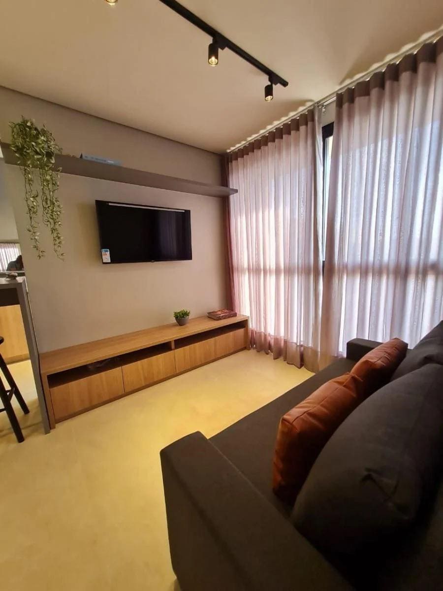 Relaxe neste espaço calmo e cheio de estilo. Acomoda até 4 pessoas. Self check in. O apartamento é bem mobiliado com as acomodações agradáveis, com tudo que necessita, tanto no quarto, cozinha e sala com sofá cama. Temos roupa de cama, toalhas, travesseiros, mantas e secador de cabelo 220V, ar condicionado e ventiadores. O condomínio Blend é bem tranquilo!! A área externa é composta de piscina, sauna, academia e lavanderia.