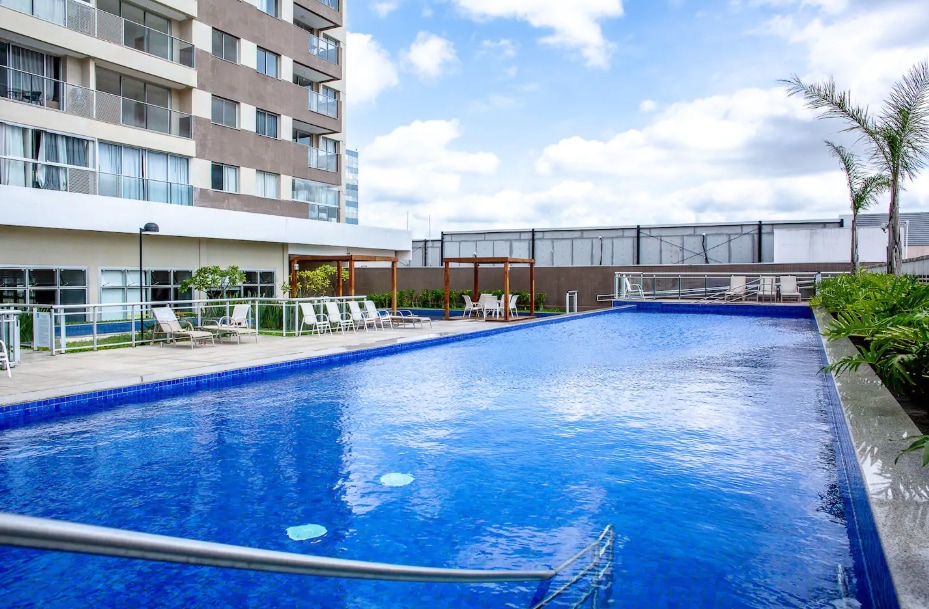 Tranquilo para trabalhar e descansar. A 9min do aeroporto, 4km do lago Paranoá e ao lado do Casa Park e Park Shopping. Estrutura 4 estrelas com 4 piscinas (semi-olímpica é aquecida) sauna e academia. Business center, recepção e restaurante são 24h. Apto tem microondas, fogão, frigobar, filtro de água, cafeteira, panelas, liquidificador, sanduicheira e utensílios. Banheiro tem secador de cabelos e barra de segurança. Cobertor extra, ferro e tábua ficam no armário. Wi-Fi muito bom e a Tv é Smart.