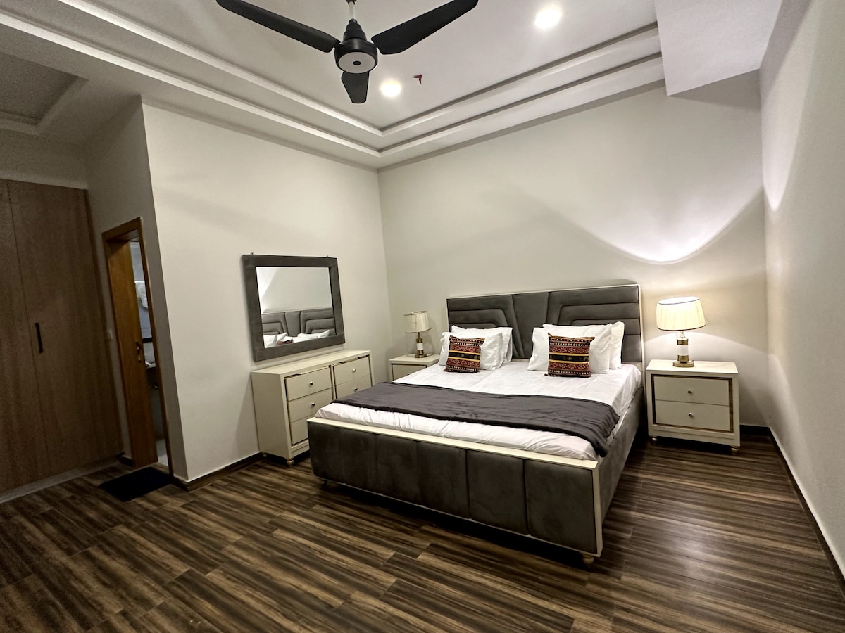 Welcome to our stylish two-bedroom suites in DHA 5 Islamabad. Enjoy the convenience of a quick commute and relax in a space featuring lovely decor and a fully-equipped home theater. Ideal for travelers seeking comfort and entertainment, this cozy retreat offers modern amenities in a prime location. It is a complete separate portion with it own separate entry and parking, family friendly, therefore very secure and peaceful. Parties & loud music is not allowed. Unmarried couples not allowed.