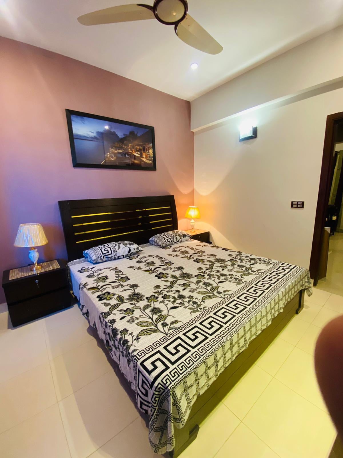 Experience luxury living in this stylish 2-bedroom apartment in Bahria Town Rawalpindi, featuring king-size beds, a 65” Smart TV with Netflix, high-speed Wi-Fi, air conditioning, and hot/cold water. Enjoy stunning Eiffel Tower monument views from 3 private balconies. Ideal for families and business travelers, with 24/7 security, a dedicated housekeeping team, and a peaceful, upscale neighborhood. Book now for comfort, convenience, and unmatched hospitality.