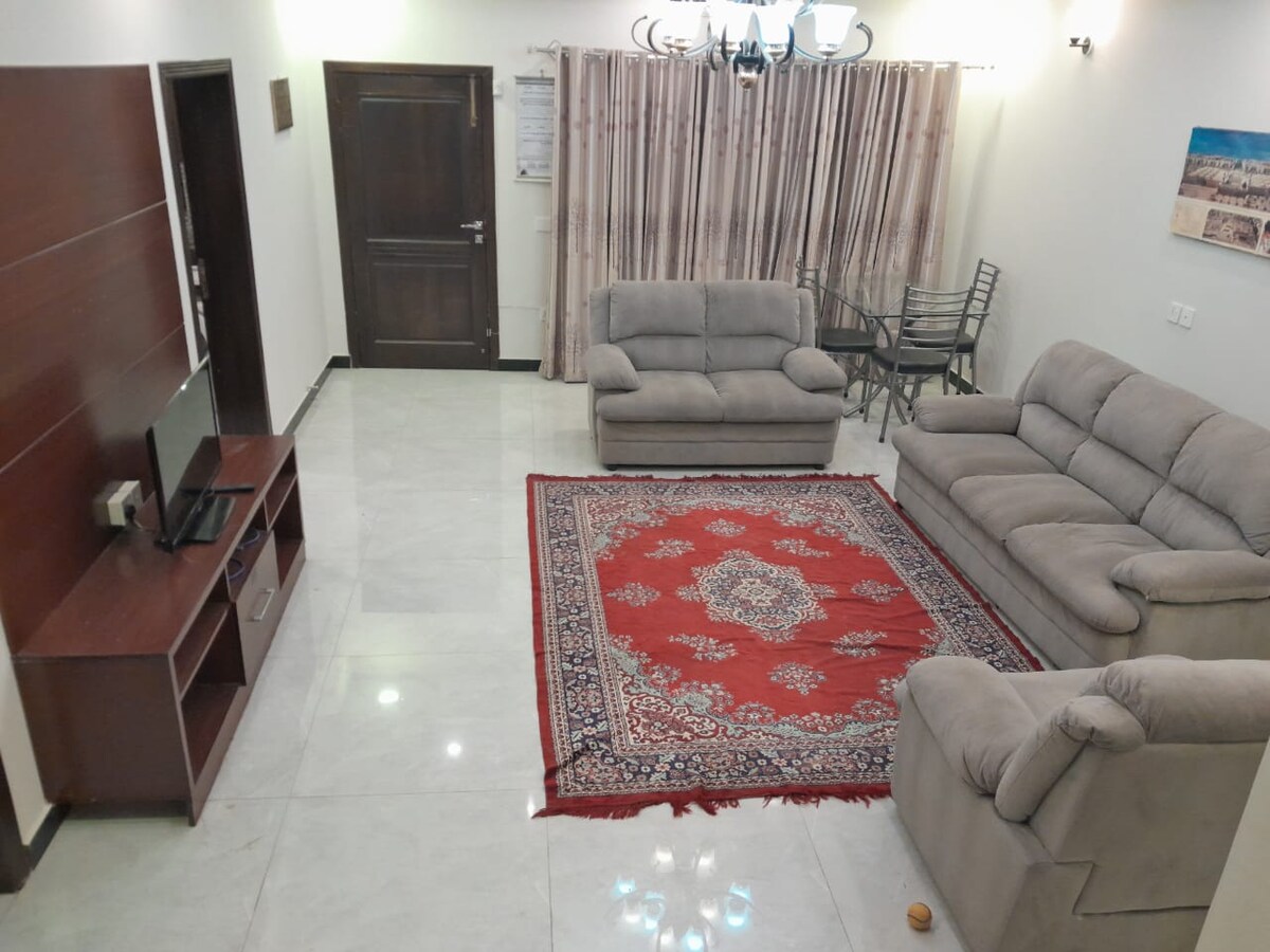 This is a 2 bed luxury apartment located at main location of Bahria Phase 8. Has capacity to accommodate 4 guest (normal) or 5 guest with additional bedding). Every room has own TV and bathroom and the lounge has a large TV screen. It is private, luxurious, comfortable and well equipped. The Kitchen is fully functional, it means has full cooking facilities with microwave, cooking range, coffee maker, toaster and necessary utencils.