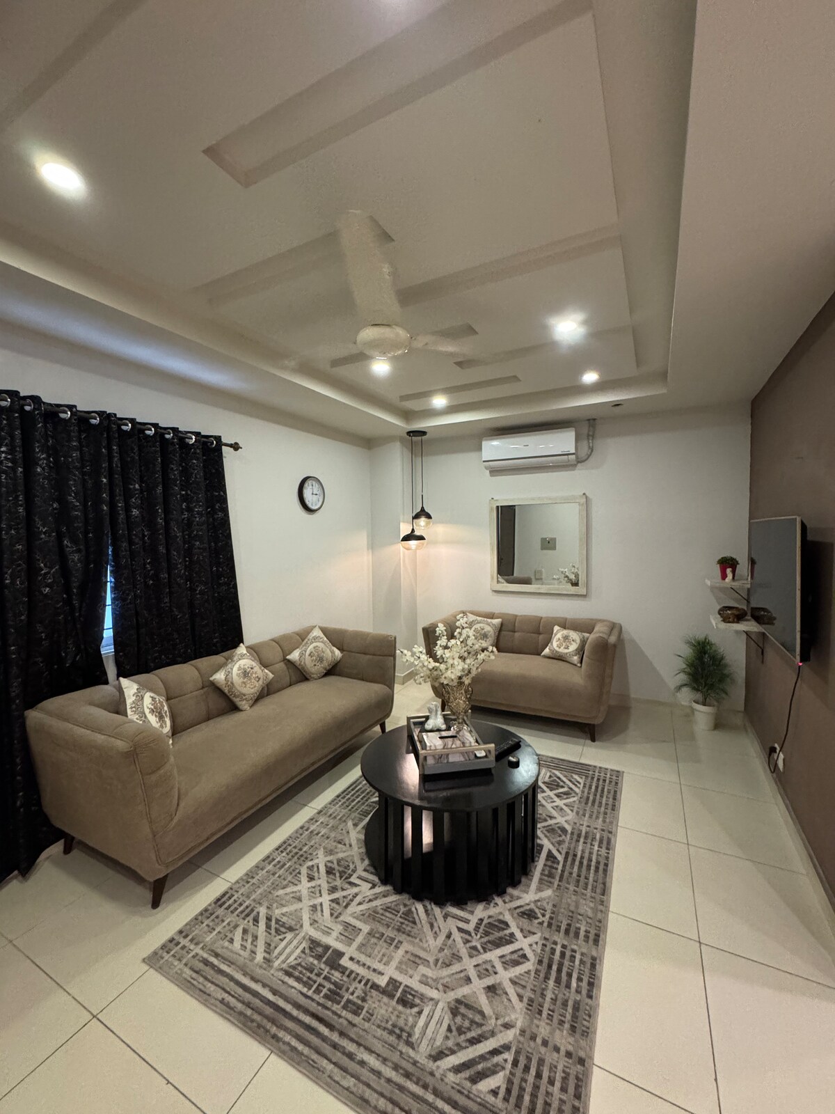 Luxury 2BHK in Zeta Mall | Giga Mall & Margalla Views - Spacious 1725 sq ft 2-bedroom condo with two king beds and a private balcony with outdoor seating. - 55" Smart TV and 30 Mbps Wi-Fi for work or streaming. - Fully equipped kitchen, inverter ACs, hot water and modern décor for a seamless stay. - Located above Zeta Mall Food Court, steps from Giga Mall, minutes to DHA and the Expressway. - Perfect for families and business travelers. - CNIC required 18+. No smoking or parties. Book Now!
