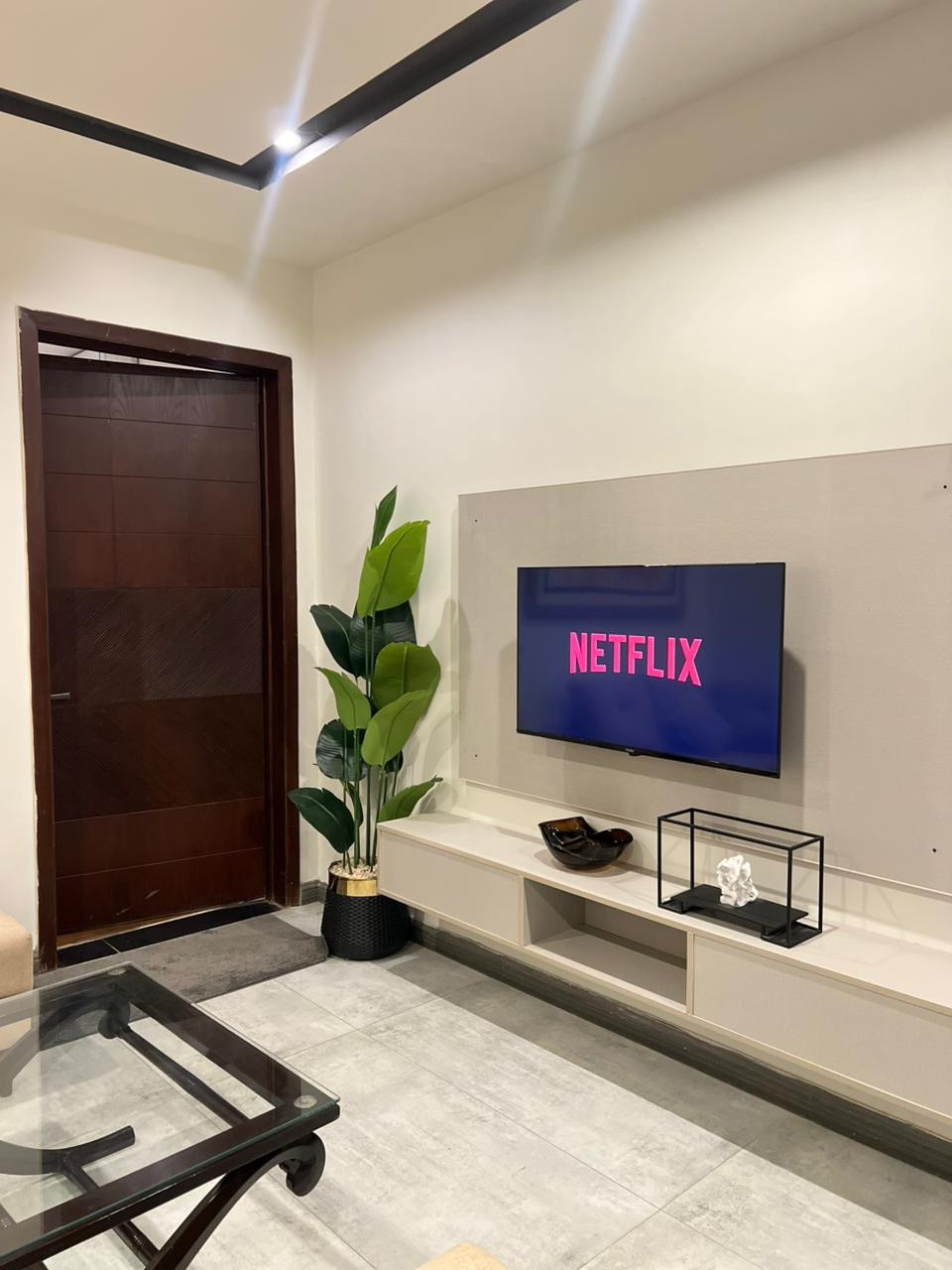 Spacious 2-Bedroom Stay with Premium Amenities! ✅ 2 Spacious Bedrooms – Each with an attached washroom ✅ Bright Living Area – Relax with a big TV and fast WiFi ✅ Independent Kitchen – Equipped with fridge, deep freezer, and dining table ✅ AC & Hot Water – Stay comfortable in all seasons ✅ Private Terrace – Perfect for fresh air and relaxation ✅ Luxury Furniture – Elegant and classic touch ✅ Mattress on Request – Extra sleeping space if needed ✅ Secured Property - Cameras installed at entrance.