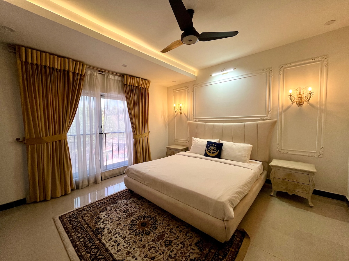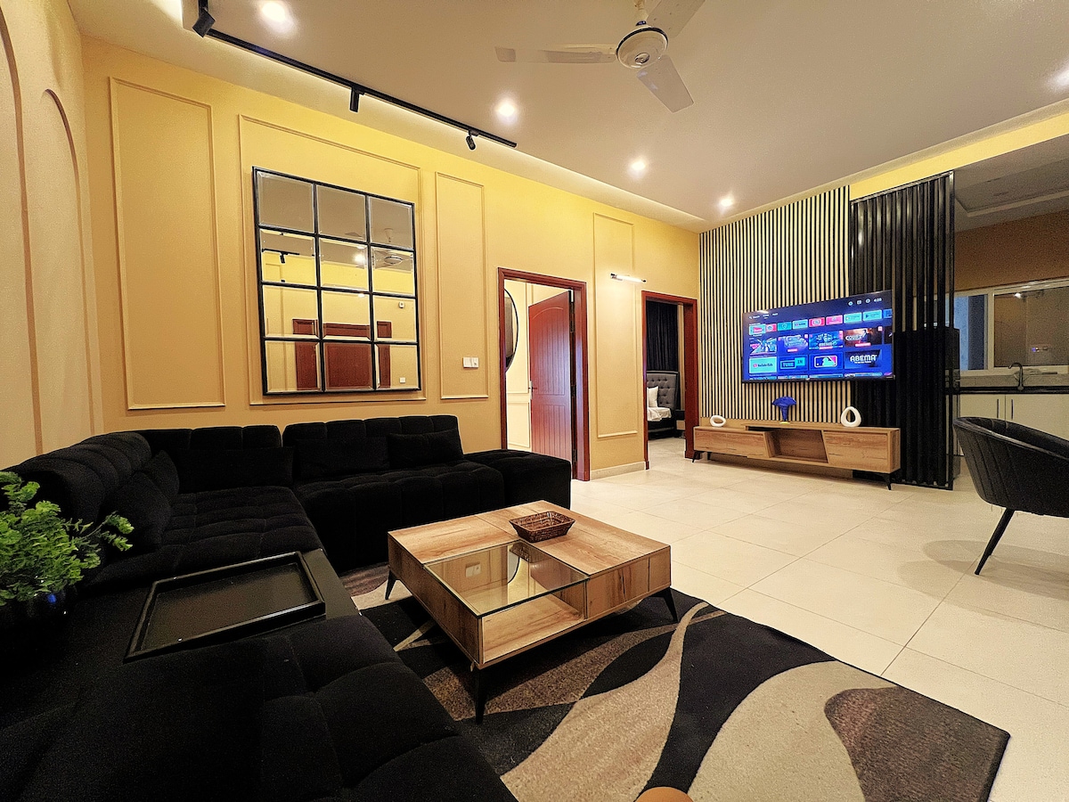 Welcome to Your Spacious 1BHK Designer Apartment! Enjoy breathtaking views of DHA 3 and Islamabad’s serene hills from this 1972 sq ft modern retreat on the 9th floor. Perfectly located opposite Giga Mall, this luxurious space features a king-size bed, 55" Smart TV, ultra high speed WiFi, a fully equipped kitchen and a private balcony. Ideal for couples, solo travelers or small families. Modern decor, smart locks and inverter ACs ensure a comfortable stay. Book now for a memorable experience!