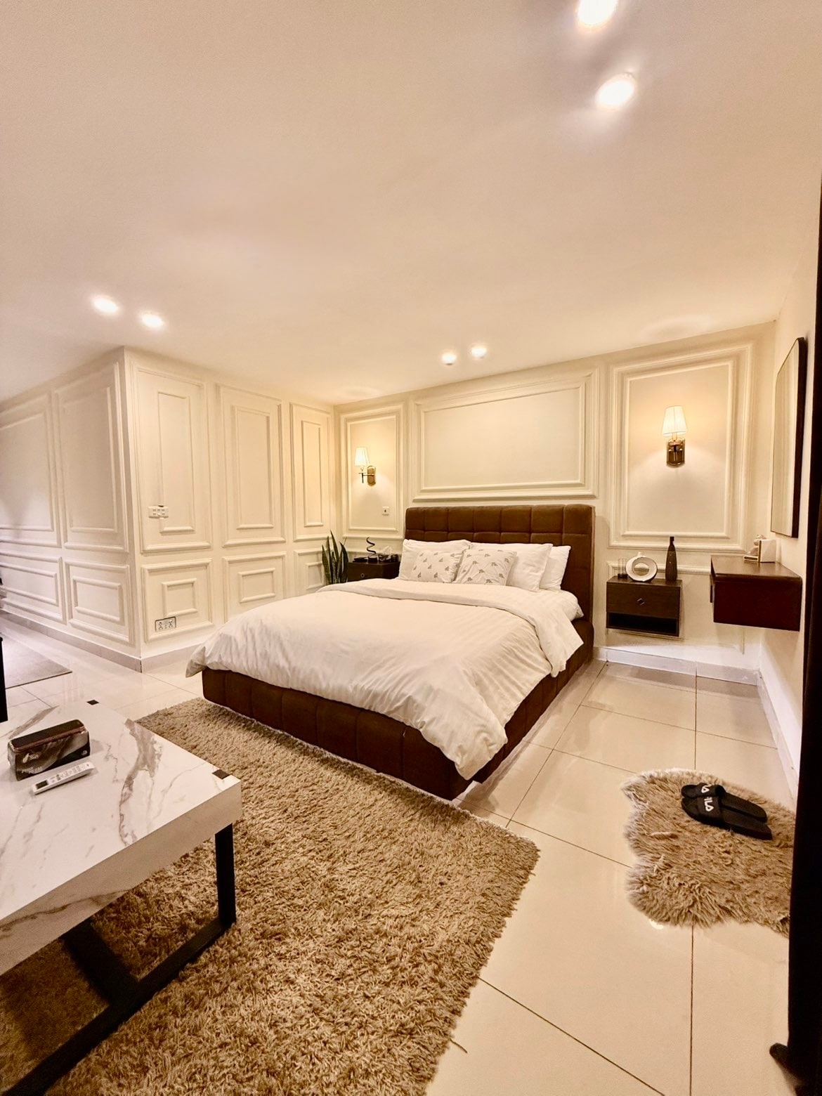 Welcome to your modern escape — a 1-Bedroom apartment with an infinity pool, located opposite Giga Mall in the heart of DHA Islamabad. Enjoy a luxurious stay with elegant interiors, a fully equipped kitchen, smart TV, high-speed Wi-Fi, and access to the stunning rooftop infinity pool. Perfect for business travelers, couples, or small families seeking comfort, convenience, and style just steps from Giga Mall’s shopping and dining.