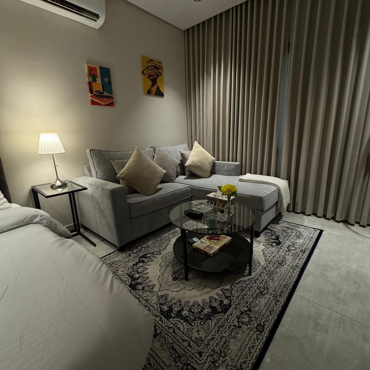 Enjoy your stay in this elegant and spacious studio apartment, designed with modern touches and cozy comfort. The space features: • Queen bed • Smart TV • Comfortable seating • Bathroom — all in one open, airy layout. 📍 Prime Location: • 10 min to Ajdan walk/ Corniche • 6 min to Dhahran Mall • 10 min to Aramco & KFUPM • 10 min to Bahrain Causeway • Only 2 min walk to Flamingo Mall Perfect for business travelers or couples looking for a relaxing, well-connected stay in Al Khobar.