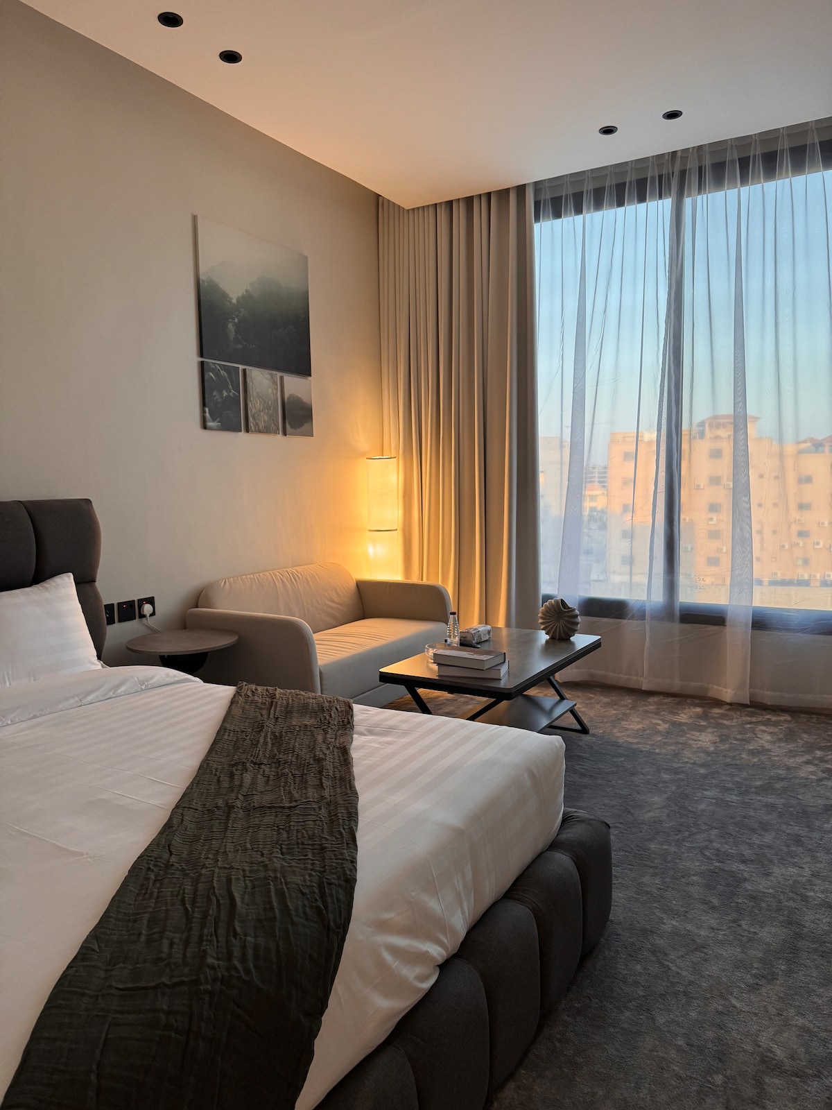 شقة تتكون من غرفة مع سرير مزدوج وصالة بشاشة 60 بوصة . تبعد عن ارامكو 10 دقائق دقيقتين عن طريق ابو حدرية وطريق الامير متعب ١٥ دقيقة عن مجمع الملك فهد ٢٠ دقيقة عن مطار الملك فهد الدولي ١٥ دقيقة عن كلية الامير سلطان العسكرية للعلوم الصحية. دخول ذكي وآمن. تصميم انيق وهادئ. في اعلى دور مع اطلالة- الدور السابع .
