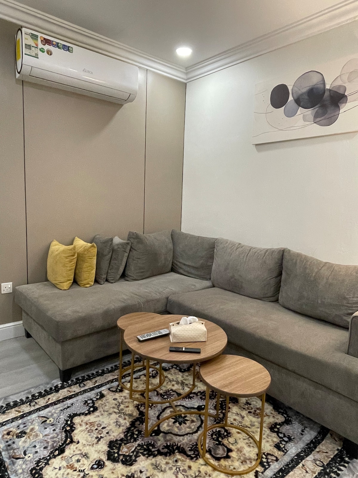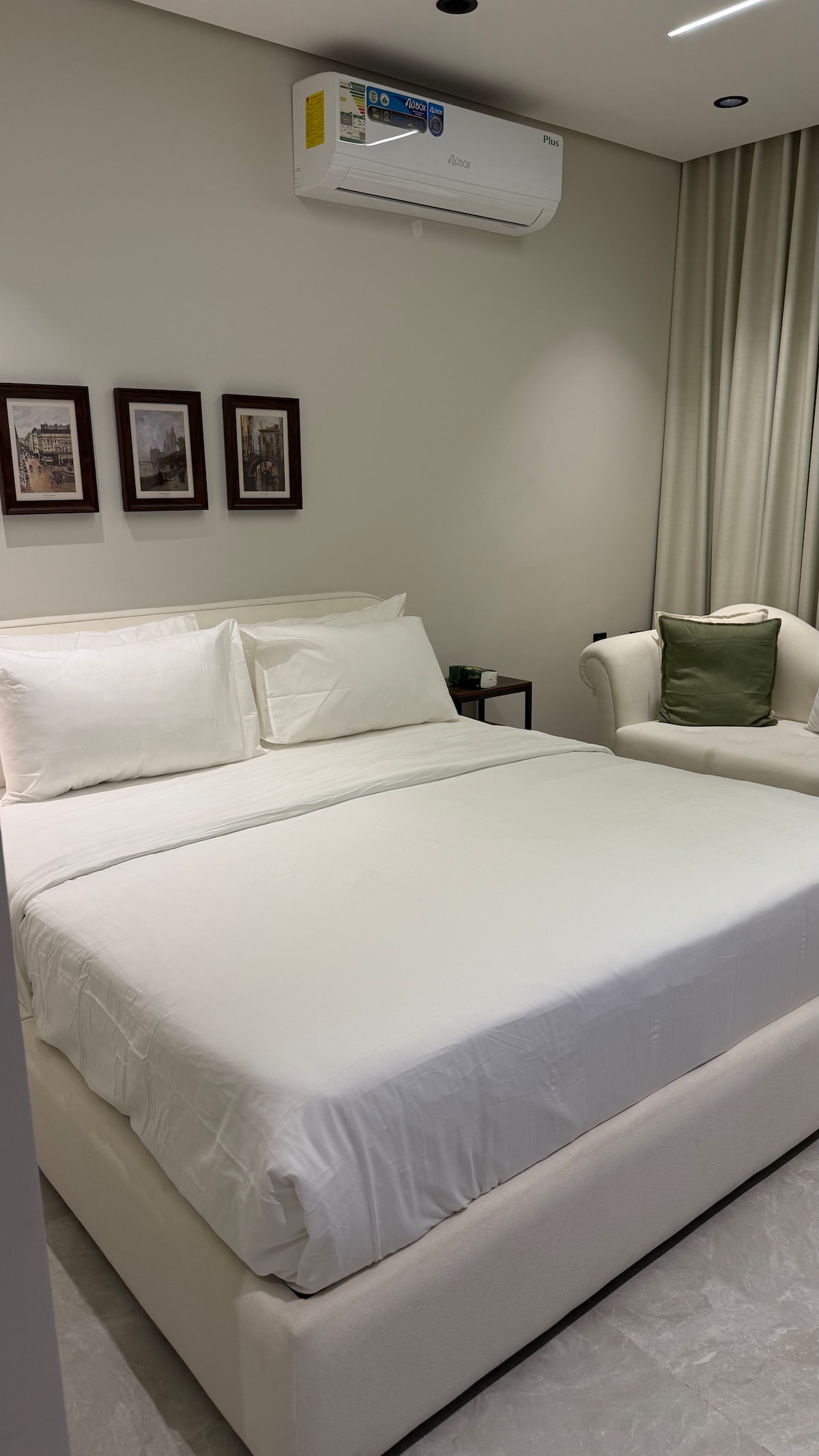 شقة فاخرة في حي هادئ وقريب من البحر، مثالية لمن يبحث عن الراحة والهدوء. تتكون من غرفة نوم مريحة بديكور أنيق وأجواء دافئة تساعد على الاسترخاء. صالة واسعة ومشرقة مزودة بشاشة ذكية لمتابعة جميع البرامج والتطبيقات المفضلة بكل سهولة مع خدمة واي فاي مجانا. المطبخ متكامل بكل ما تحتاجه: ثلاجة، فرن، ميكروويف، غلاية، إضافة إلى الشاي والقهوة لتبدأ يومك بأفضل طريقة. كما تضم الشقة دورتين مياه بتصميم عصري. موقع مميز قريب من البحر والخدمات، لتستمتع بإقامة هادئة ومميزة بكل تفاصيلها.