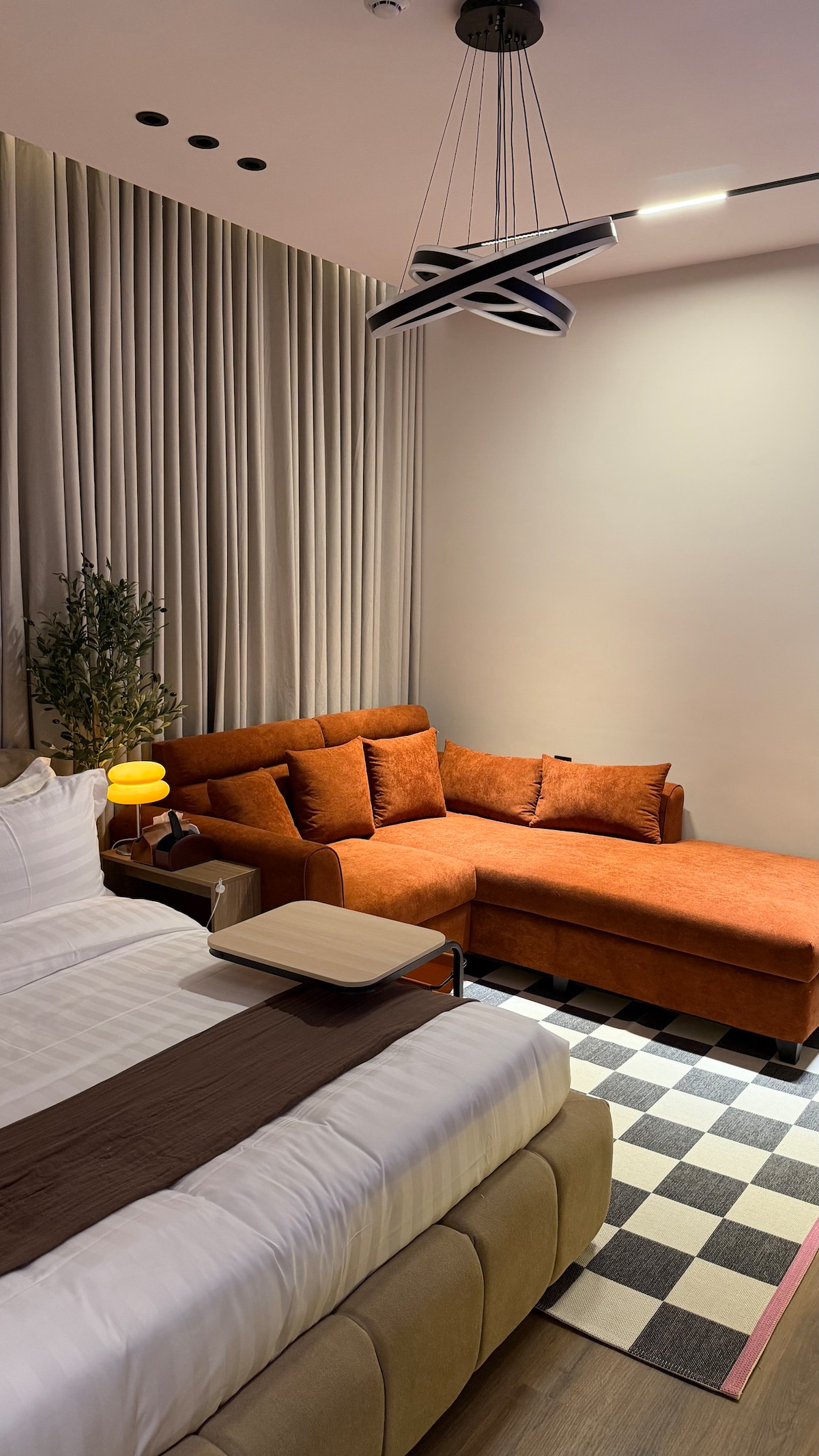 Enjoy your stay in this stylish and central 1bedroom apartment, designed with modern touches and cozy comfort. The space features: • Queen bed • Smart TV • Comfortable seating • Bathroom all in one open, airy layout. 📍 Prime Location: • 10 min to Ajdan walk/ Corniche • 6 min to Dhahran Mall • 10 min to Aramco & KFUPM • 9 min to Bahrain Causeway • Only 2 min walk to Flamingo Mall Perfect for business travelers or couples looking for a relaxing, well-connected stay in Al Khobar.