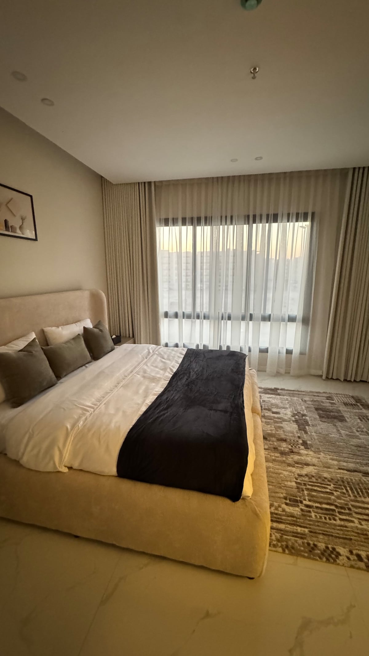 مرحبًا بك في شقتك الجديدة المفضلة! شقة أنيقة ومُصممة بذوق رفيع، تجمع بين الألوان الدافئة والتفاصيل العصرية لتمنحك إحساسًا بالراحة وكأنك في منزلك – ولكن بمستوى فندقي راقٍ. 📍 الموقع لا يُفوّت! تقع داخل برج حديث وأنيق، أمام البحيرة مباشرة، 🛋️ المساحات: • غرفة نوم هادئة ومريحة • صالة فسيحة بكنبة مخملية جذّابة وجوّ فني مميز • دورة مياه بتشطيبات أنيقة 💡 مزايا إضافية: ✅ واي فاي عالي السرعة – مجانًا ✅ موقف خاص داخل البرج – مجانًا ✅ ماكينة قهوة وأجواء مثالية للاسترخاء أو العمل