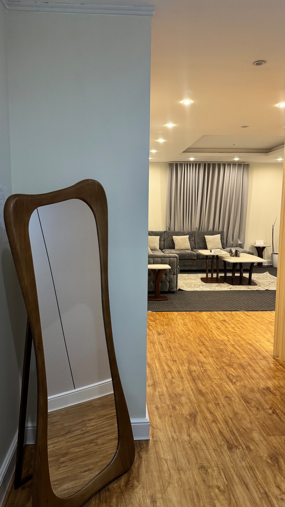 “حياك الله في شقتنا الواسعة والجميلة اللي فيها ثلاث غرف نوم مريحة وثلاث دورات مياه، وكل وسائل الراحة اللي تحتاجها. الشقة بتصميم عصري وإضاءة طبيعية، ومع خدمة واي فاي سريع تناسب العمل والترفيه. الموقع مميز، قريب من كل الخدمات، زي المطاعم والكافيهات، والشارع التجاري قريب فيه كل اللي تحتاجه من تسوق وغيره. نهتم بالنظافة على أعلى مستوى، والشقة تكون نظيفة تماماً قبل وصولك ✨، وعندك خدمة تنظيف إضافية خلال فترة إقامتك. فيها كمان شاشة سمارت تقدر تشوف عليها برامجك وأفلامك المفضلة. .