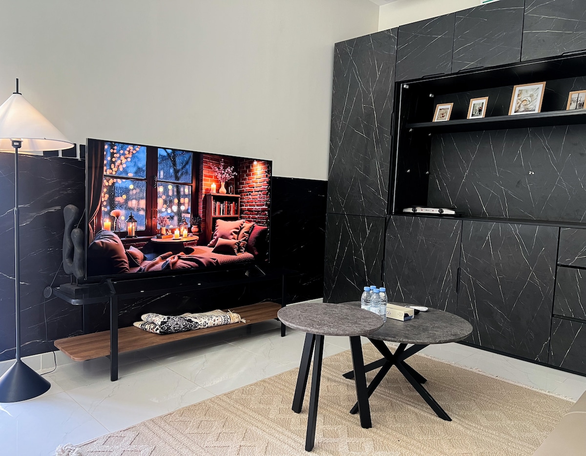 مرحبًا بك في ذا مهدية استديو، تجربة إقامة عصرية ومريحة في قلب حي المهدية، الرياض. استديو فسيح ومضيء بتصميم يتكون من: - منطقة نوم بسرير كبير ومراتب مريحة تضمن لك نوماً هادئاً. - جلسة معيشة أنيقة مع كنبة مريحة، تلفاز ذكي. - ركن مكياج كلاسيكي مع مرآة أنيقة. - جلسة قراءة جانبية مع كرسي بطابع عصري. - طاولة طعام صغيرة للاستخدام اليومي. - ديكورات بسيطة ولمسات تعزز الشعور بالاسترخاء. المكان مثالي للأفراد أو الأزواج الباحثين عن إقامة قصيرة مريحة في أحد أكثر أحياء الرياض نموًا وهدوءًا.