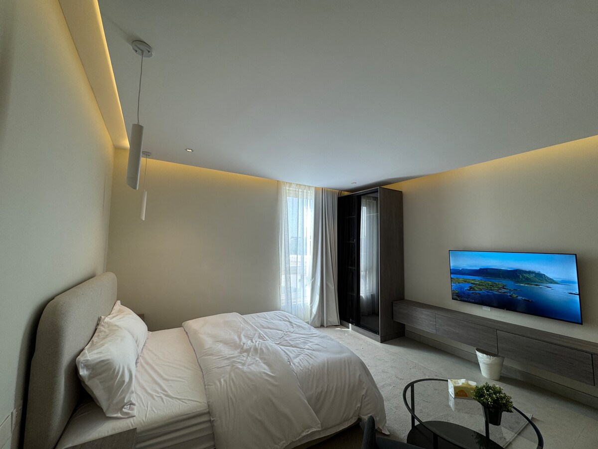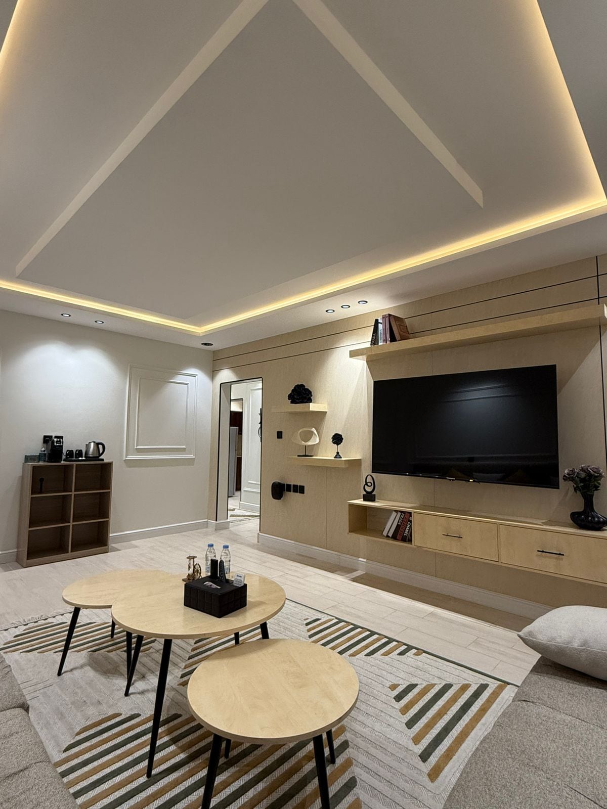 استوديو بتصميم دافئ ومريح، مثالي للراحة أو العمل. يضم سرير ماستر، شاشة 65 بوصة مع Netflix، ركن كوفي مجهز، ومنطقة جلوس. خدمة فندقية، واي فاي، طاقم نظافة ومشرف متواجد دائمًا لخدمتكم.