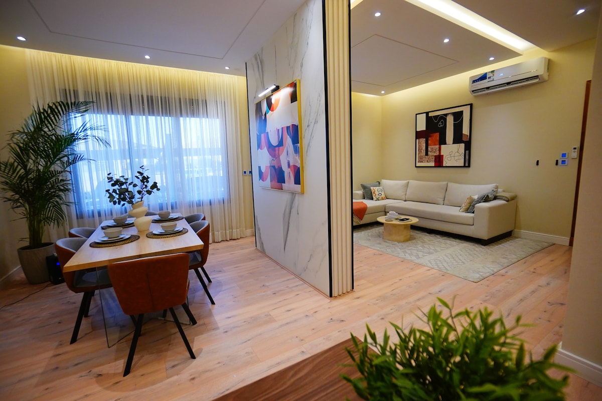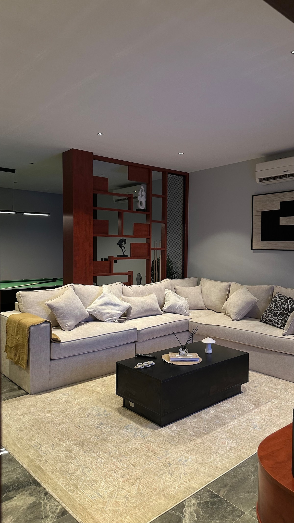 هذا المسكن الفريد له أسلوبه الخاص والمتميز في أثاثه حيث يمكن الاستمتاع بشاشة عرض 75بوصه بشاهد ونتفلكس ويوتيوب بريميوم ومطبخ مجهز بأدوات الطبخ ومغسلة ملابس والأدوات الفندقيه ومناسب للإقامات الطويله في موقع مميز وشارع متكامل الخدمات .