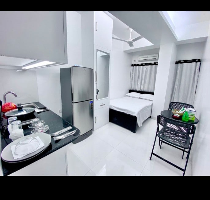 This cozy 4th-floor home combines comfort and convenience with a bright bedroom, wall cabinet, seating area with TV, prayer room, workstation, and dining space. The kitchen includes a fridge, oven, and HI-TECH water filter for easy living. Essentials like geyser, Wi-Fi, and AC in both bedroom & living area ensure comfort. Located next to Gulshan Aarong outlet and walking distance to food shops, it’s perfect for quiet reading, working from home, or simply relaxing for maximum 2 people.