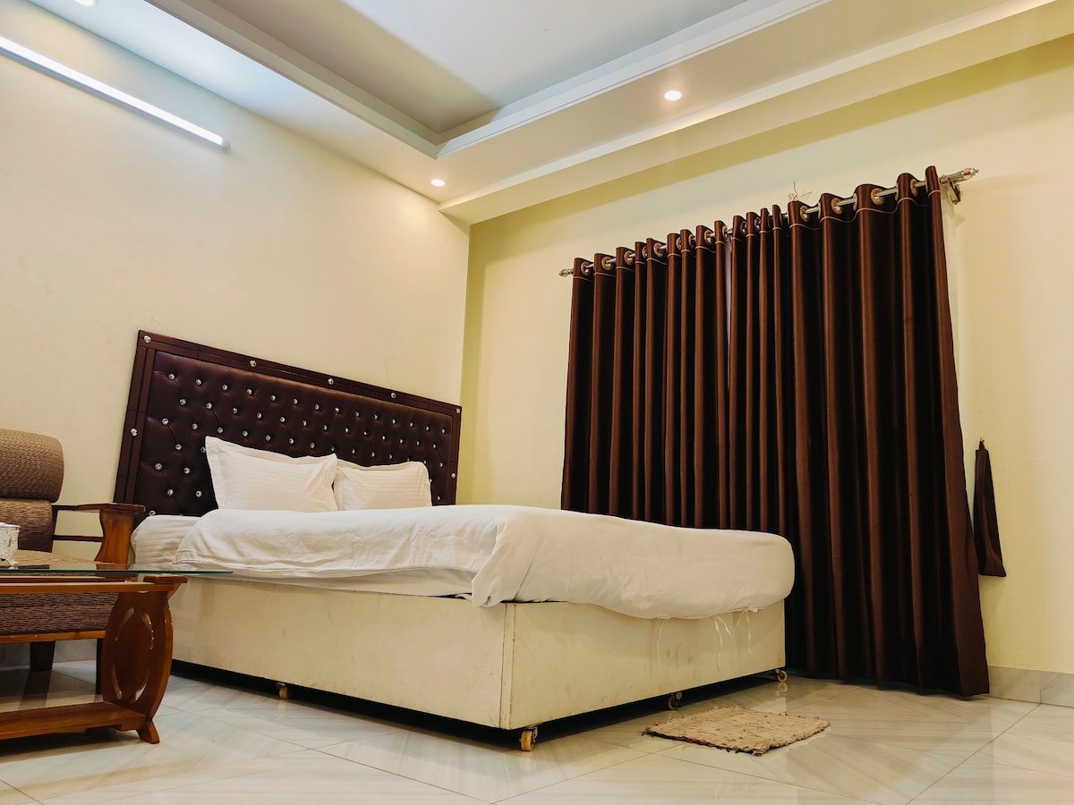 It is a very basic room with a bed and attached washroom. Suitable for travellers who just need to sleep in. Fresh linens and basic toiletries are provided There's a bathtub in the washroom but it's out of order, as it has been left untouched for a long time. For better accommodations please have a look at our other properties. Strictly No unmarried couples.