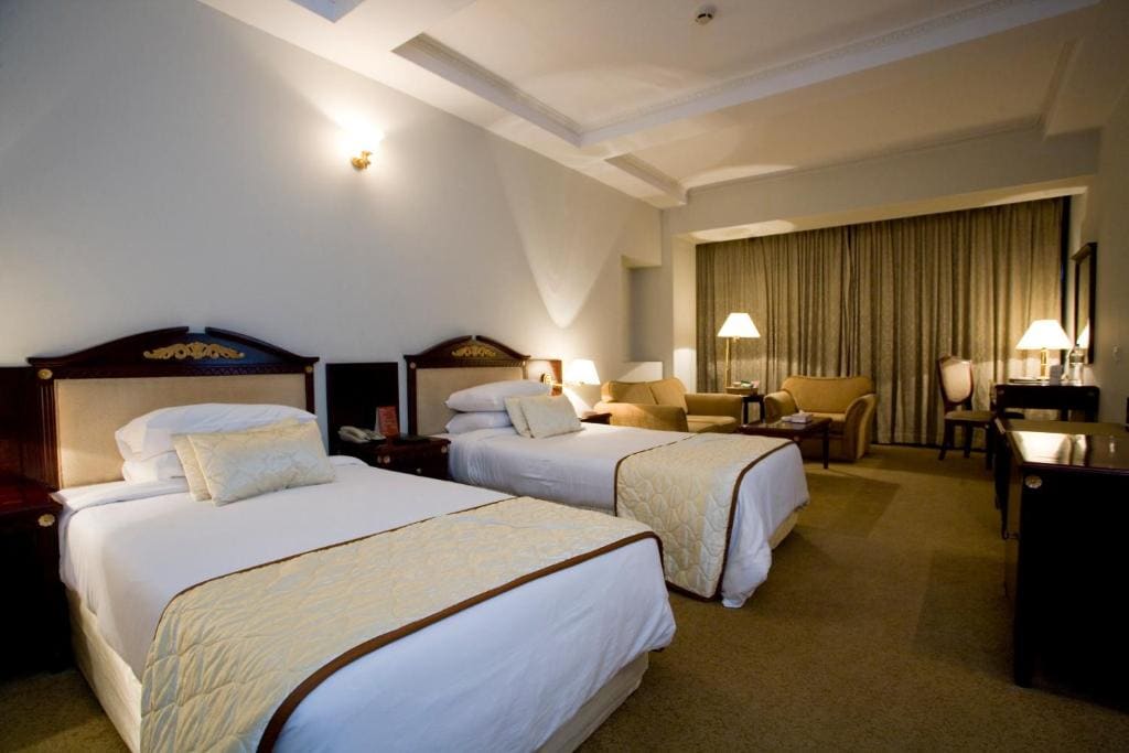 Three Star facility service provider Hotel which promise to provide the luxury in affordable value. Located inside the radius of “Diplomatic Green Zone” with 40 contemporary flavored design rooms and various facilities and services like; All day dine, Specialize Roof top Restaurant, Fitness Center, Sauna & Steam room and other facilities. Enjoy easy access to popular shops and restaurants from this charming place to stay.