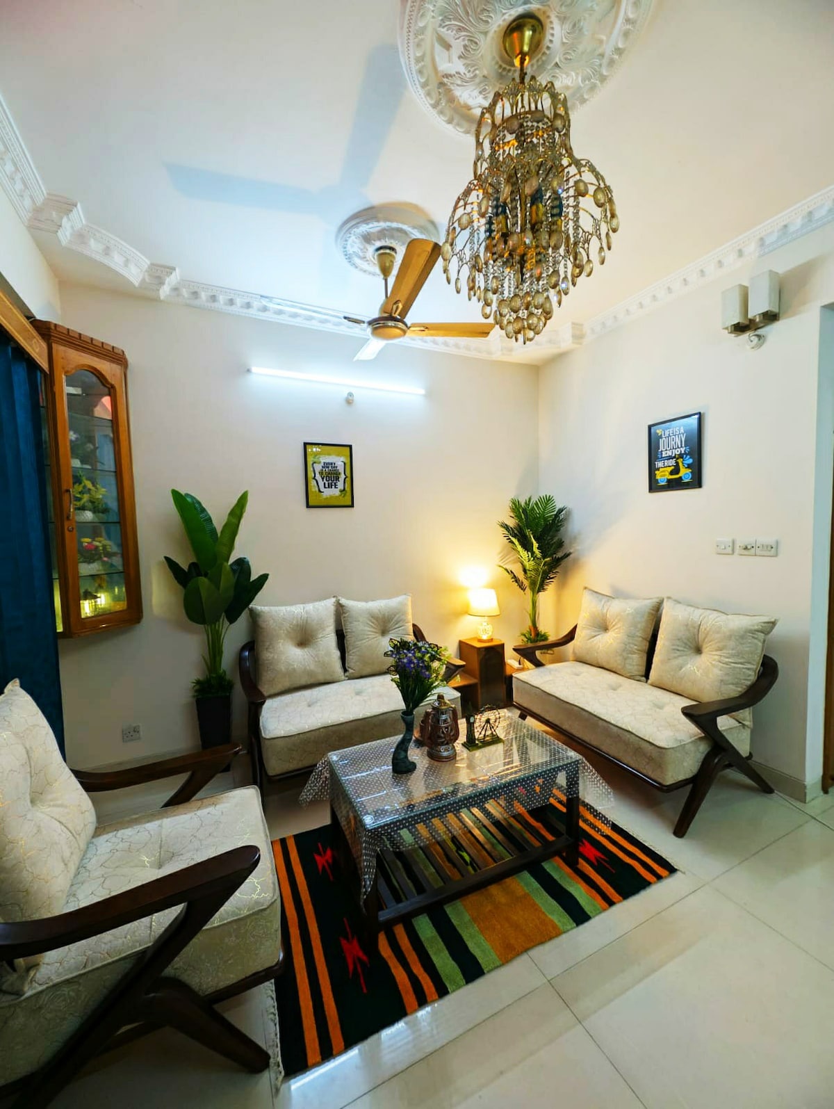 Reconnect with loved ones in this family-friendly place. close to airport and all amenities. Grocery, food chain shops are minutes away. Elegantly decorated with all house facilities. Separate Gym room with electric trade mill and other equipments. Exclusive library with huge collection of books. Three 55 inch TV, 6 AC, all Bathrooms with Geyeser, 6 battery IPS covering whole apartment in addition to generator. Floor ofvreal wood and spanish tiles. Expensive wooden furnitures.