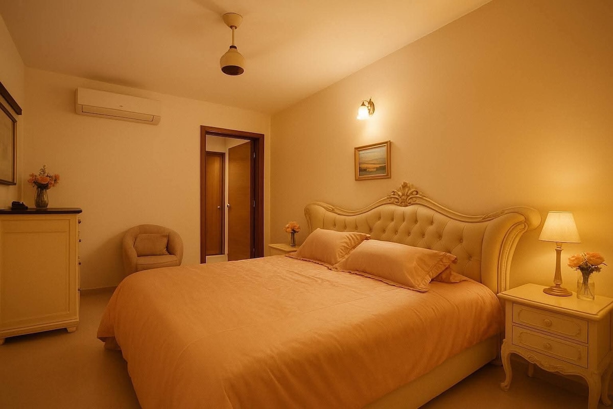 1680 sqft luxurious 2 bedroom Apt.all rooms are air conditioned and has spacious modern wall cabinets.Attached bathroom with hot shower. Master suite has Attached balconie & 9/7 ft Custom bed where 4 person can Sleep. 2nd bedroom king size bed and designated workplace. Fully equipped kitchen with microwave and all new cooking and eating amenities.Spacious air conditioned living area brand new sofa set including a queen sofa bed.Dining table with 6 chairs &Refrigerator.Servent Room with Bath.