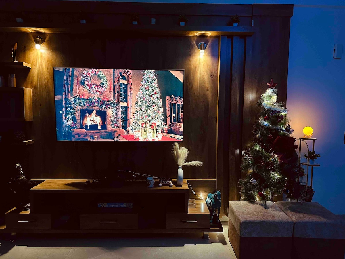 This is a beautifully designed 2bhk with Heated Jacuzzi. It takes 4 hours to heat the water. Located amidst nature, where wind is pine scented and chirping of birds feels like a melody. this beautiful home offers an elegant 2 Bedroom Space with stylish decor and Modern Amenities. No home in the hills feels like one without being able to Ever Sit outside and embrace the marvelous beauty of Hills , a wide Balcony is the plus that makes the experience one of its Kind.
