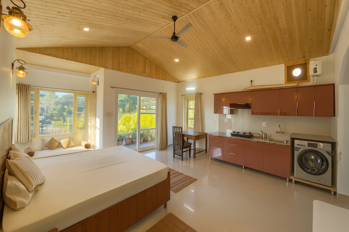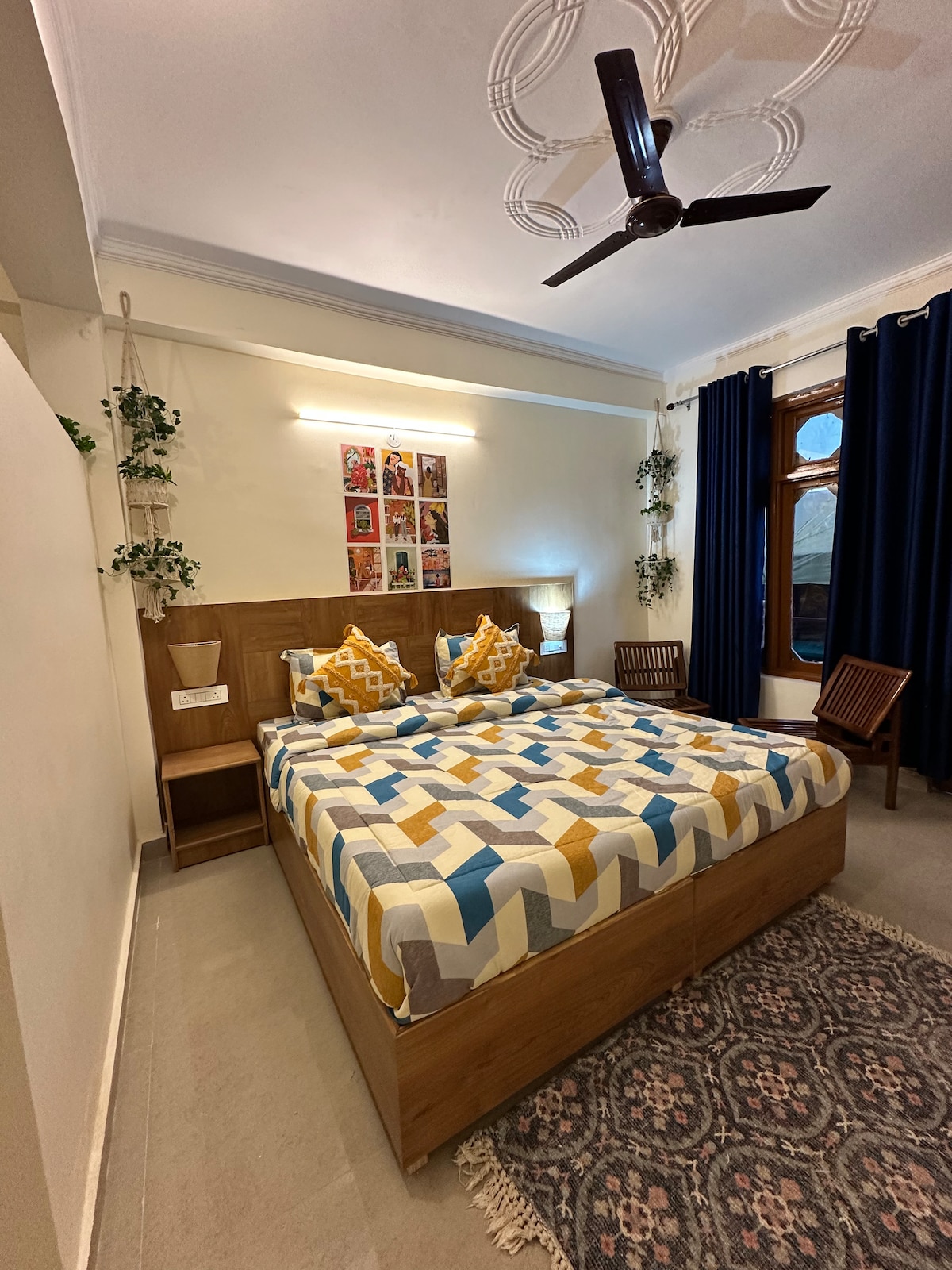 The Space Above BnB is a thoughtfully decorated home to feature art, coffee, and mindful living to create the peaceful environment for a relaxing stay. Located right above The Other Space Cafe in Jogiwara Village, this home comes equipped with all the modern amenities one needs. Guests have a big open terrace garden to enjoy the view of the Dhauladhar mountain range, a dedicated work area with fast internet, and a cafe right below which offers all guests a complimentary breakfast everyday.
