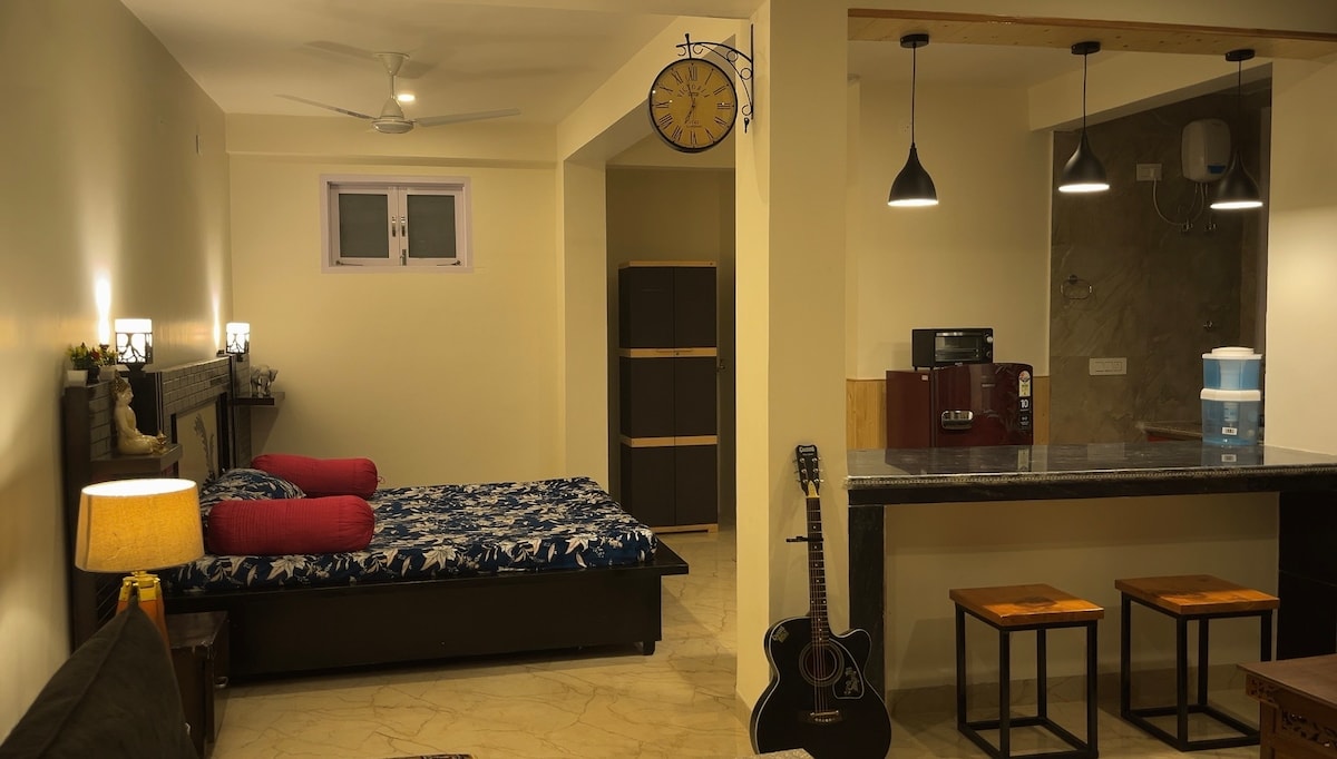 The Space Above BnB is a thoughtfully decorated home to feature art, coffee, and mindful living to create the peaceful environment for a relaxing stay. Located right above The Other Space Cafe in Jogiwara Village, this home comes equipped with all the modern amenities one needs. Guests have a big open terrace garden to enjoy the view of the Dhauladhar mountain range, a dedicated work area with fast internet, and a cafe right below which offers all guests a complimentary breakfast everyday.