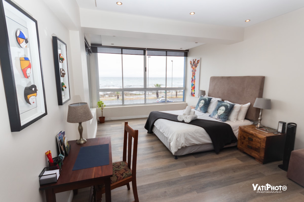 Newly renovated studio with wonderful sea views. The apartment is ideal for one or two people on holiday or for business. Kitchen is fully equipped for cooking. The apartment has WiFi as well as a smart TV with Netflix. The complex is situated in Sea Point, just a 2 minute walk from the promenade and a 5 minutes drive to the Waterfront, Clifton and Camps Bay beaches. Secure parking is available. 24 hours security/doorman are present. There is also an inverter for load shedding.