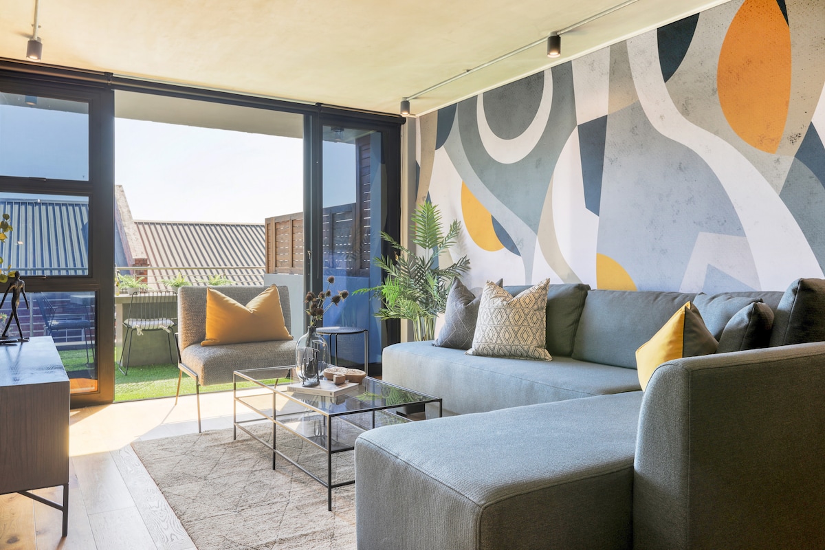 Rejuvenate the senses in the quiet flat of this updated home. The space features a slight mid-century modern aesthetic, sharp bursts of colour, eclectic furnishings and decor, contrasting textures and patterns throughout, and a bright lounge area. Decorated by myself...this is how I want you to experience Cape Town. Enjoy my contemporary art and relax in my comfortable space. Only this level of the house is accessible for exclusive guest use. Feel free to contact me during your stay for any assistance and/or recommendations during your stay in Cape Town. Green Point is centrally located and forms part of the Atlantic Seaboard, with Clifton and Camps Bay beaches nearby. The property is close to restaurants and shops, while the CBD and the renowned V&A Waterfront are both only 2 kilometres away. Free parking in the street is available. Uber is inexpensive and a great way of getting around Cape Town.