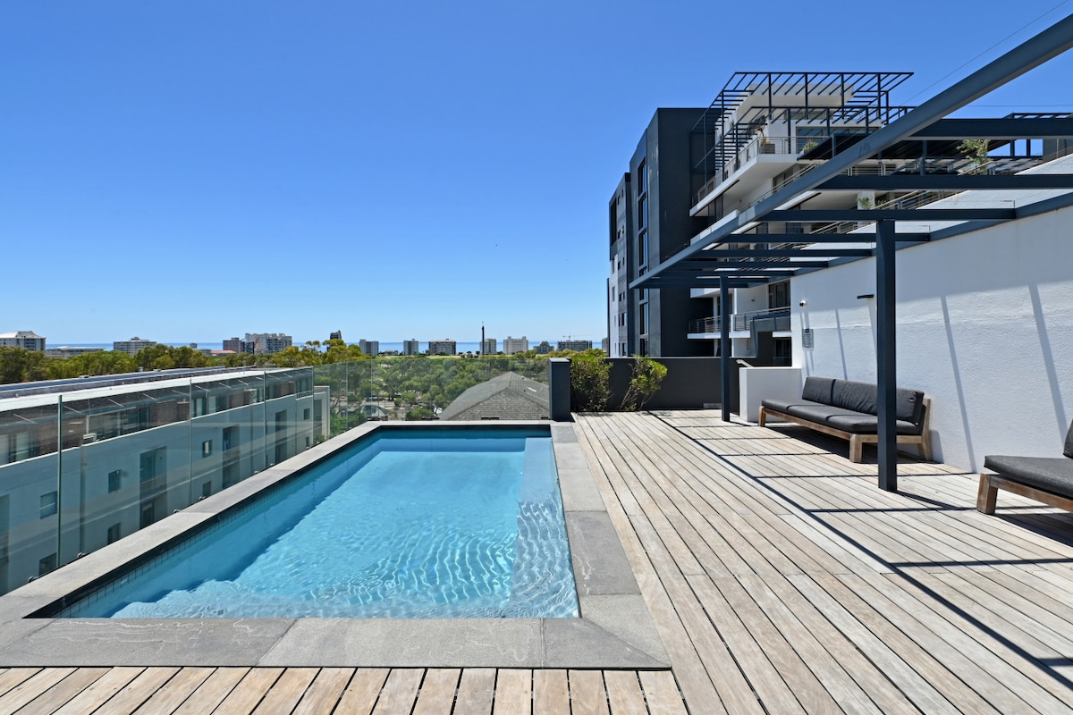 This deluxe designer 2 Bed 2 Bath apartment in the heart of Green Point offers magical views of Signal Hill and Green Point Stadium. It is within close proximity to the Promenade, V&A Waterfront, some of Cape Town's best beaches, finest coffee shops, bars and restaurants. The apartment has access to a communal entertainment area with rooftop pool, BBQ which boast magical 360-degree views. The apartment block has an Inverter for communal areas. 24 hr security and an underground parking bay.