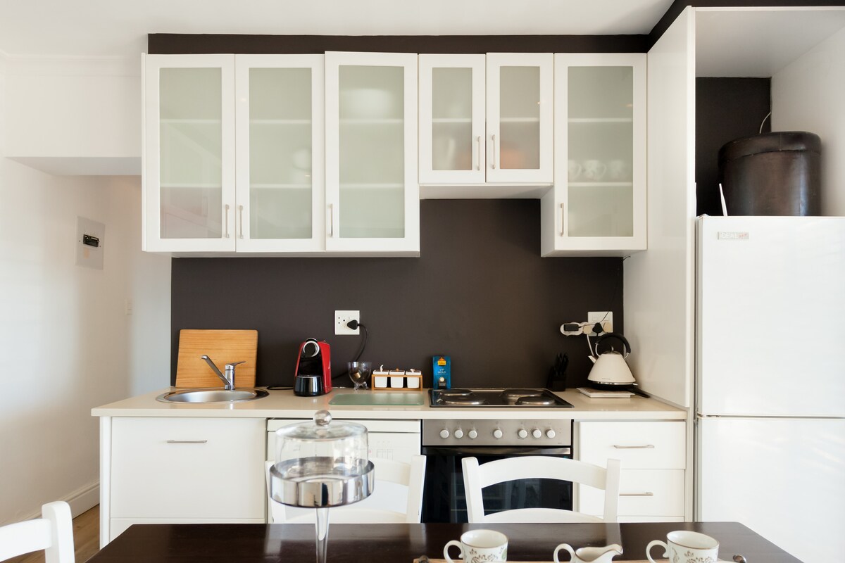 This stand alone cottage on our private property is located in the Bishopscourt area of the Western Cape. The cottage is an open plan lounge,bedroom with two big verandas, a kitchenette and a large bathroom with a shower and bath that opens out to a very private balcony with sun loungers and an outside shower. With magnificent views of the mountain and terrains, one can fully unwind and relax in this more than spacious cottage. This private cottage will be all yours during your stay. There are multiple lounging areas inside and outside the cottage. Our long serving housekeeper, Maks, will be there to look after you and make sure you always have what you need.She cleans and does the washing daily except on a Sunday. Located within walking distance to many stunning hikes, walking routes, mountain biking, and cycling routes. There are many places nearby that you can rent bikes and there is ample storage at the house for bikes to be stored. There is ample and secure parking on our property for the vehicle you bring along for your stay. I am usually here and am very happy to help with advice at all times. This home is in a quiet residential area with beautiful houses and leafy streets. Close to the botanical gardens and near the city. Uber Available.Safe parking on the grounds of the property. No need for Air Conditioning units as the mountain air in the mornings and evenings will be cool and crisp all year long. There is a ceiling fan, if you need additional cooling. Towels,beach towels,picnic basket all available at the cottage. The space is about 60sqm +