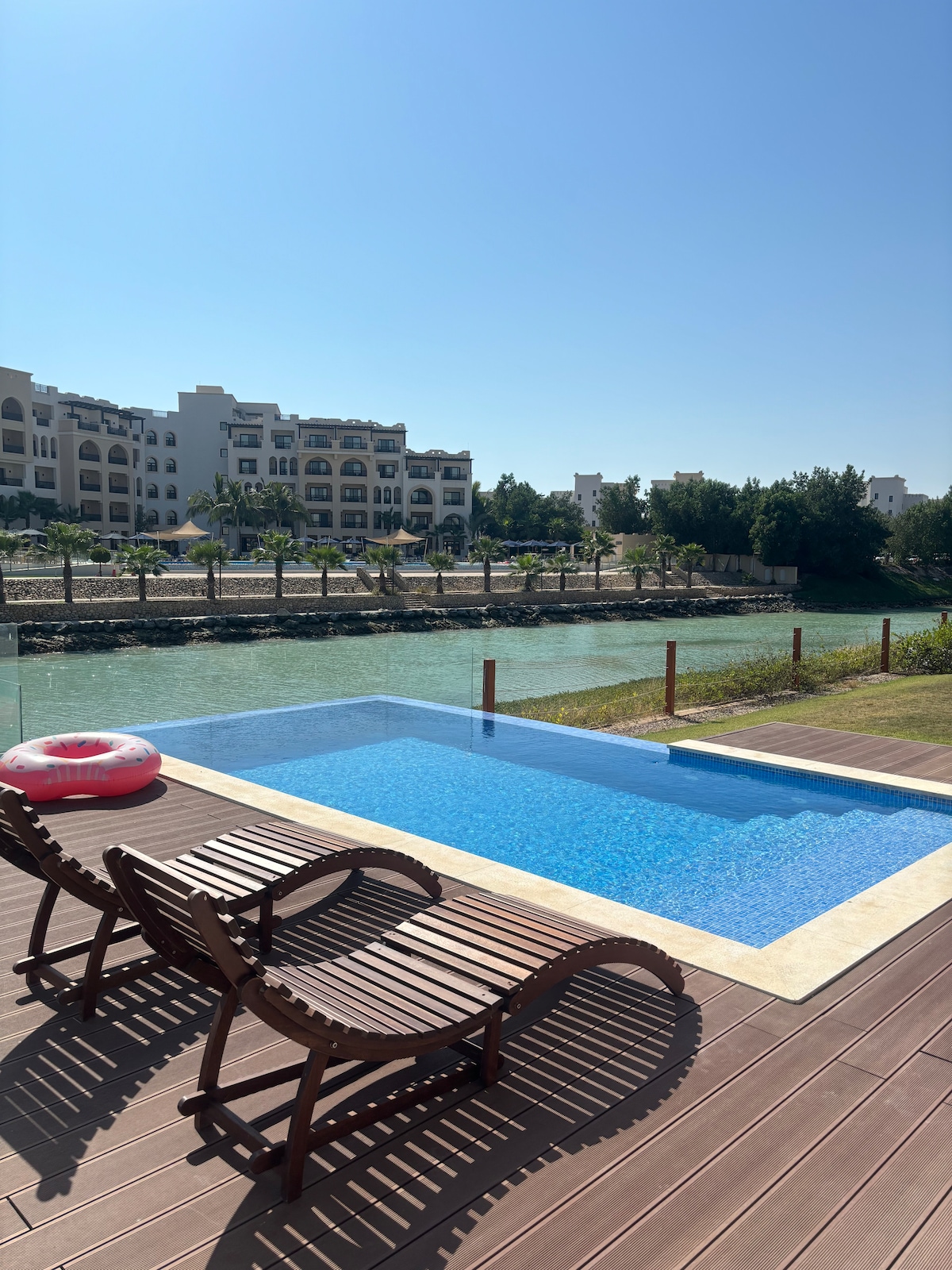 Enjoy a taste of Salalah in Arabian Amber A stunning home earthly designed for comfort & peace. Here our guests can experience their stay in Salalah with a sense of relaxation in a most tranquil environment. An endless pool awaits you just outside your back door steps It’s surrounded by outdoor fitness and children’s play equipment, a yoga podium and BBQ facilities A tennis court and waterpark are close by Captivating beaches only a short walk from your home. What are you waiting for!