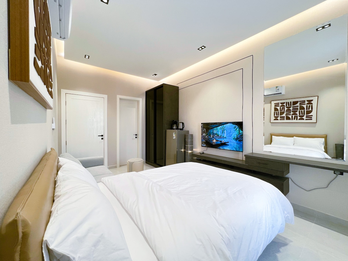 Modern & Bright One-Bedroom Apartment in Al Mahdiyah , West of Riyadh Welcome to this stylish and contemporary apartment, designed for comfort and convenience, this space is ideal for solo travelers, couples, or small families. Diriyah - 25 min Boulevard World & City - 30 min Riyadh Exhibition & Convention Center - Malham, Malham - 40 min Al-Masmak Palace - 30 min Qiddiya City - 50 min King Khalid International Airport - 45 min