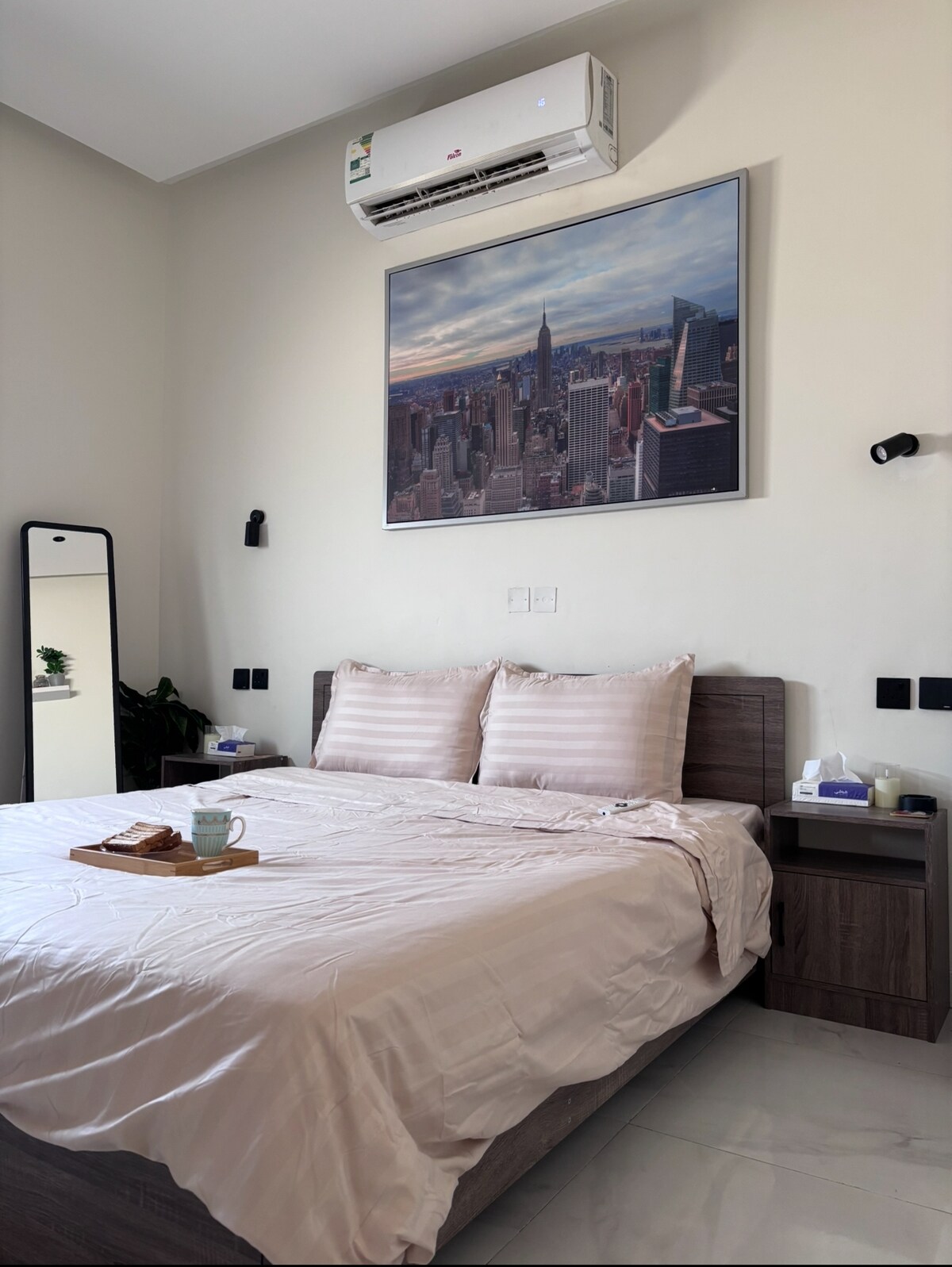 استوديو بتصميم دافئ ومريح، مثالي للراحة أو العمل. يضم سرير ماستر، شاشة 65 بوصة مع Netflix، ركن كوفي مجهز، ومنطقة جلوس. خدمة فندقية، واي فاي، طاقم نظافة ومشرف متواجد دائمًا لخدمتكم.