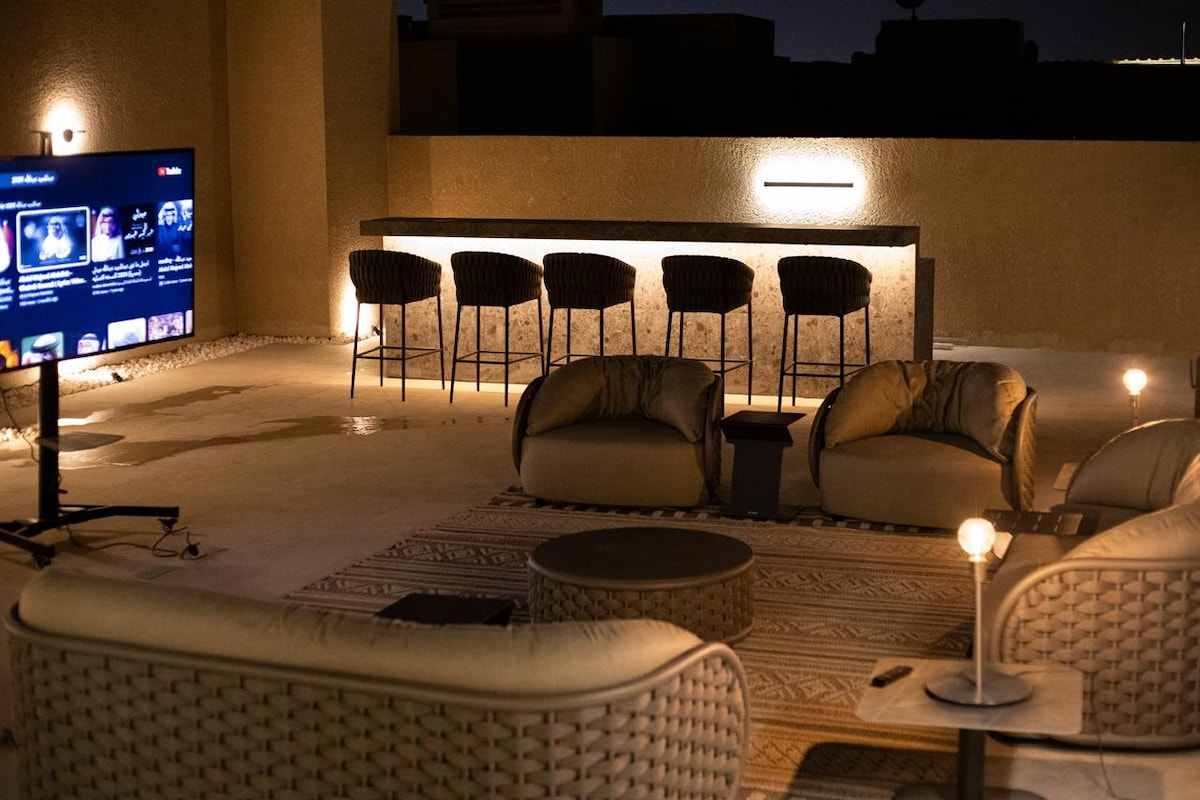 Escape to DAMMS Chalet, where privacy meets refined comfort in the heart of ‘Diriyah’ ✨. With retreat features a private plunge pool and a lush outdoor lounge—perfect for morning coffee or evening gatherings. Inside, you'll find a light-filled, modern space with [amenities like Smart TV, full kitchen, elegant bathrooms. Cozy up beside a fire pit under the stars or unwind amid tranquil mountain views. Ideal for families, couples, or small groups seeking comfort.