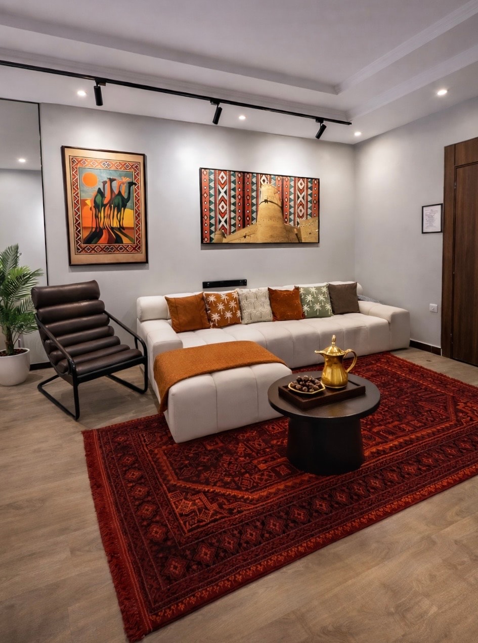 🟢 An Elevated Standard of Hospitality: The listed rate is fully inclusive. The 15% VAT is courteously covered by the host for a refined and effortless stay. 🏡 Spacious one-bedroom apartment with a living room, featuring a calm modern design in the heart of Al-Qirawan, North Riyadh. Easy access to major roads and key attractions, ideal for short or extended stays. The adjacent building includes a barber, grocery store, restaurant, and café everything you need just steps away.