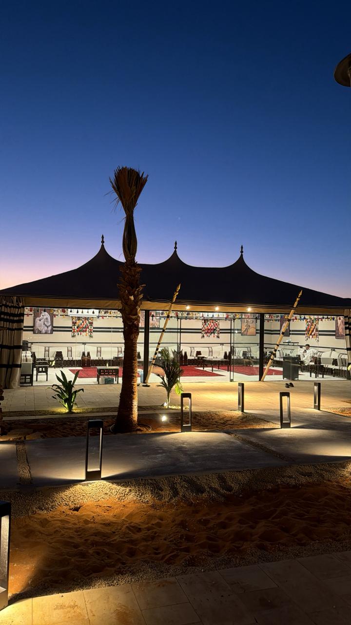 تجربة فاخرة بين الكثبان الرملية تجمع بين سحر الطبيعة ورفاهية التفاصيل. يضم المنتجع خيمتين كبيرتين تتسع كل منهما لـ 50 شخصًا على الأقل، وثلاث جلسات خارجية أنيقة تتسع كل منها لـ 20 شخصًا. كما يوفر فناءً رمليًا واسعًا، عريشًا تقليديًا، مطبخًا متكاملًا، وغرفتي نوم إحداهما ماستر، إضافة إلى مواقف سيارات واسعة. وجهتك المثالية للمناسبات والتجمعات في أجواء صحراوية فريدة.