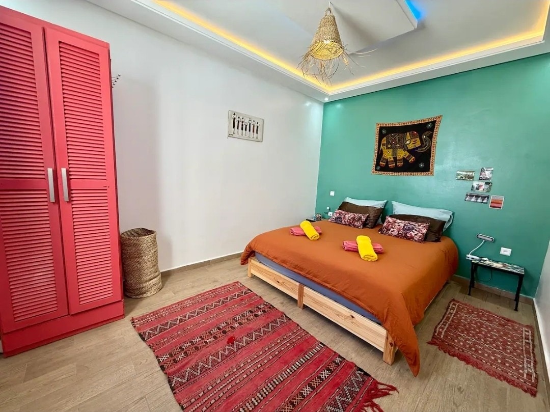 Bienvenue dans notre appartement spacieux et tranquille niché au cœur d’Essaouira, à seulement 10 minutes à pieds de la Medina et des plages. Vous pourrez profiter de deux chambres confortables, équipé d’un vidéo projecteur, de la fibre, d’un salon avec cheminée, d’une cuisine full-équipée, ainsi que de deux terrasses, dont une sur le toit avec un four traditionnel et un barbecue. N’hésitez pas à venir me poser des questions si vous en avez, nous sommes toujours heureux de vous aider! :)