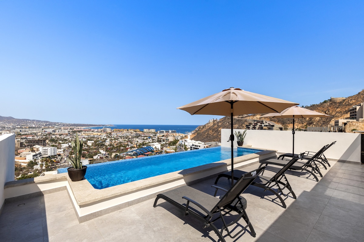 SPECTACULAR VIEWS just a 5 minute drive to the Arch Landmark and incredible Medano beach. Manager available to help you, airport pick ups for a better fee. Rooftop Pool, hottub, firepit and gym equipment. Full length mirror. Front desk 24/7 Concierge is included for your reservation by contacting Fernando our co-host. Restaurants and coffee shops near. We would love to assist you to make your vacation perfect. We recommend contacting our manager for airport transportation.