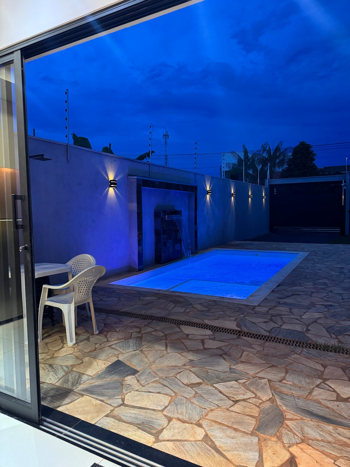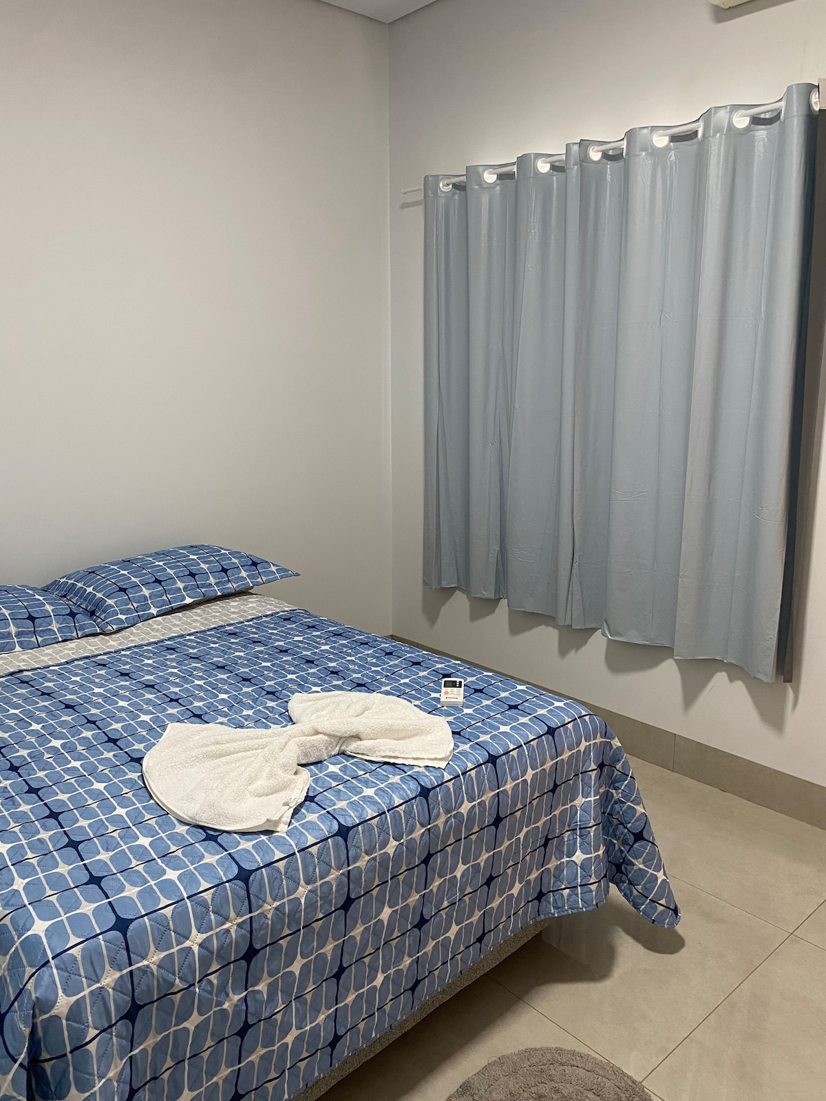 Casa Completa com duas Suítes, Sendo uma Suíte com Ar Condicionado 18 mil btus, cama king, TV, roupeiro. Outra Suite com cama Queen ar condicionado, TV, roupeiro Disponível, de fácil acesso sendo Sob Esquina com a Avenida Brasil. Local Tranquilo Silêncioso ótimo para descanso. A Casa conta com cozinha, fogao, pia e alguns utensílios.
