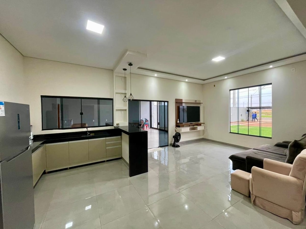 Casa espaçosa em Nova Mutum, com 137m² de área construída em um terreno de 450m². Possui 2 quartos, sendo 1 suíte, varanda, cozinha com bancada em pedra, banheiro social, área gourmet com churrasqueira e amplo quintal. Localizada próximo à MT-249, com fácil acesso a supermercados, restaurantes e pontos principais da cidade. Ideal para famílias, casais ou grupos que buscam conforto, espaço e praticidade.