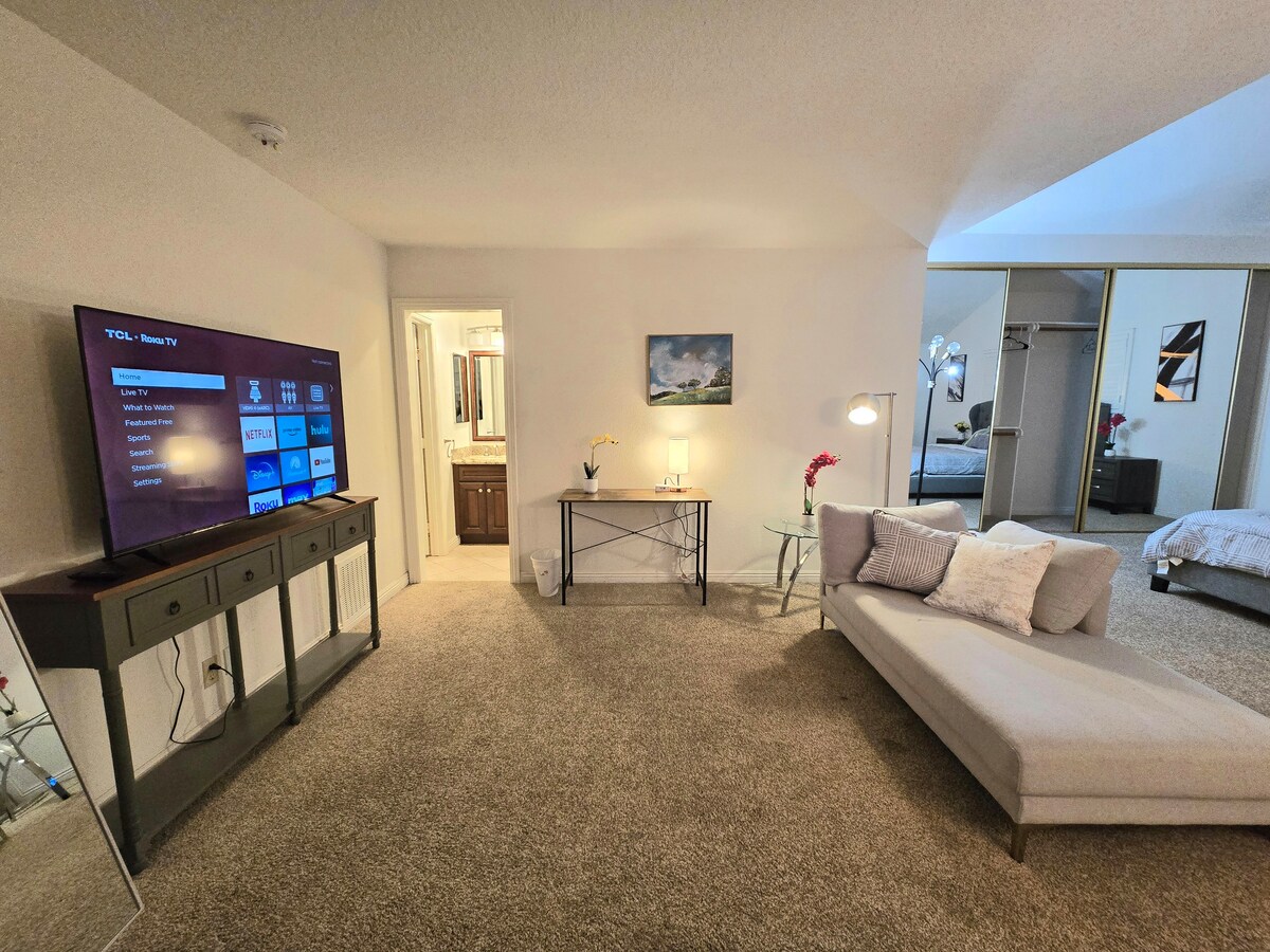 舒适加大双人床套房,带按摩浴缸,距离迪士尼乐园15分钟车程!